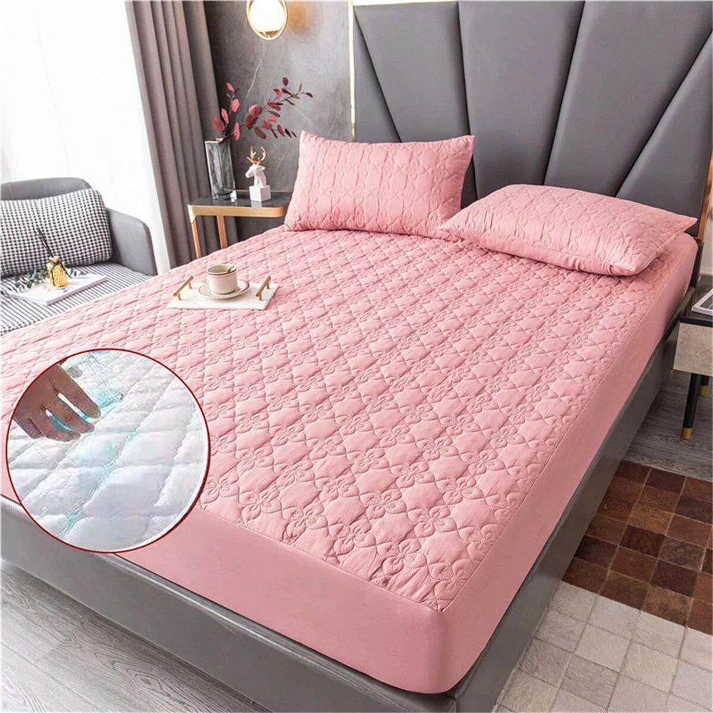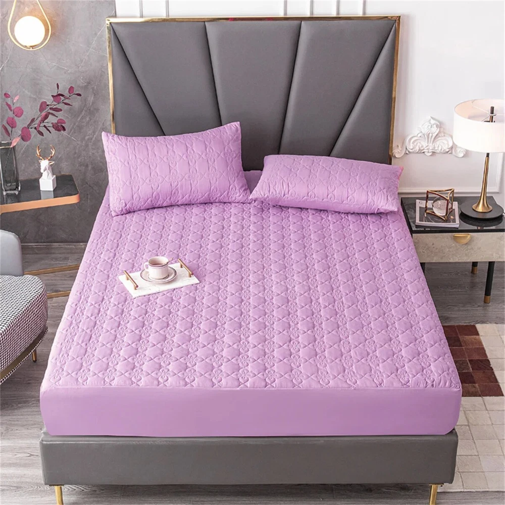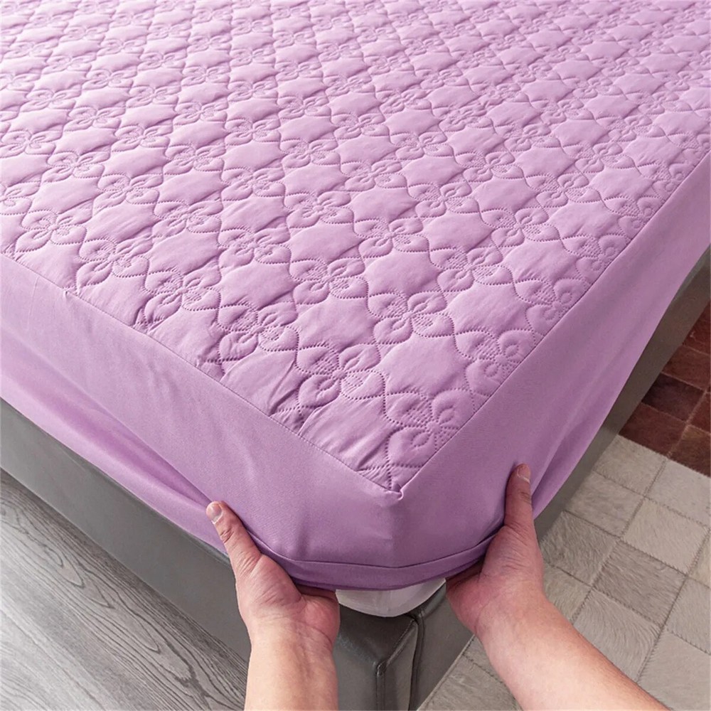 Packet include:1 pc fitted sheet (Not included Pillowcase ) Size Information: Single:90x200x25cm Twin:120x200x25cm EuKing :150x200x25cm Grand King :180x200x25cm US KING XL:200x220x25cm Note: Our mattress covers and pillowcases are purchased separately The bedspread and pillowcase are sold separately, if you want to make a set, please choose together. This bed sheet has a depth of 30cm/12 inches and is suitable for mattresses of 5-25 cm Easy to clean and machine wash, dry at low temperature with sheets, towels or other clothing. feature -Prevent dust mites, sweat, allergens and bacteria. -Very suitable for people with children, pets, allergies, asthma, eczema. -Will not change the feel of the mattress. -Fitted bed linen design. -360° elastic band design provides perfect fit and non-slip grip. -Easy to clean and machine wash. Note: All dimensions are manually measured, and the deviation range is 1-1.5 inches. Product advantages: This product is a solid-color non-slip quilted bed sheet, made of high-count, high-density skin-friendly cotton fabric, printed and dyed with imported materials, skin-friendly and soft, and guaranteed not to fade and no ball. The filling is made of high-quality feather silk cotton, and high-density quilting embroidery machinery. It makes the product more resistant to repeated washing without deformation, simple installation, convenient disassembly and cleaning, and is an indispensable product for household life.