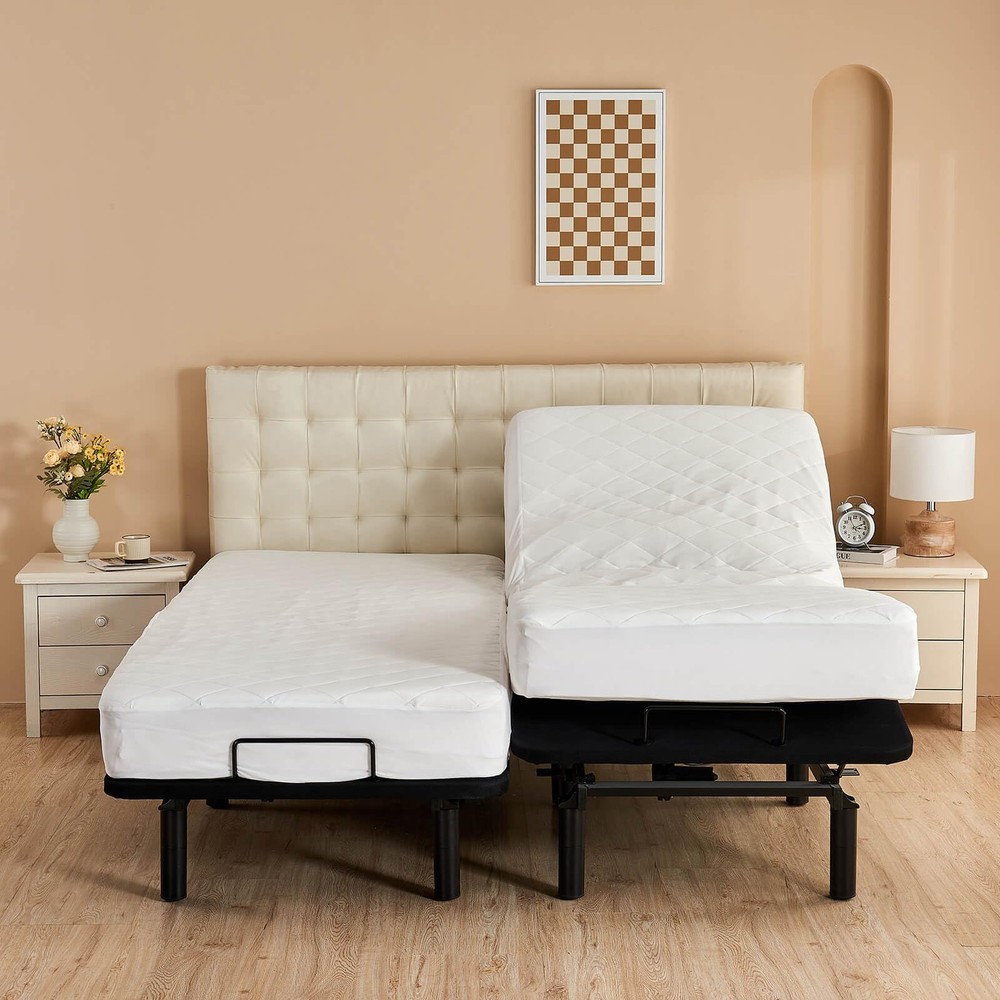 Waterproof mattress protector with cotton jersey surface and microfiber quilted padding Waterproof The back of this mattress pad is lined with waterproof membrane, which will protects your mattress against sweat, urine and other fluid spills For Adjustable Beds Our mattress protector is designed with enhanced elastic skirt for adjustable beds, it will stay in place on the mattress Soft The surface of the mattress pad is made of soft cotton jersey, soft touch, the middle is quilted with microfiber filling for extra comfort and added cushion Size information Split King there are 2 twin xl mattress protectors in 1 package, each measures 39 by 80 with up to 16 deep pocket