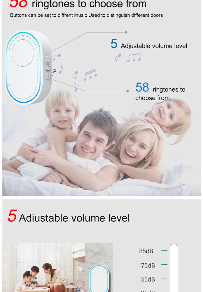 Smart Wireless Doorbell Home Welcome Door Bell 150M/82 FM Remotes Self-Powered