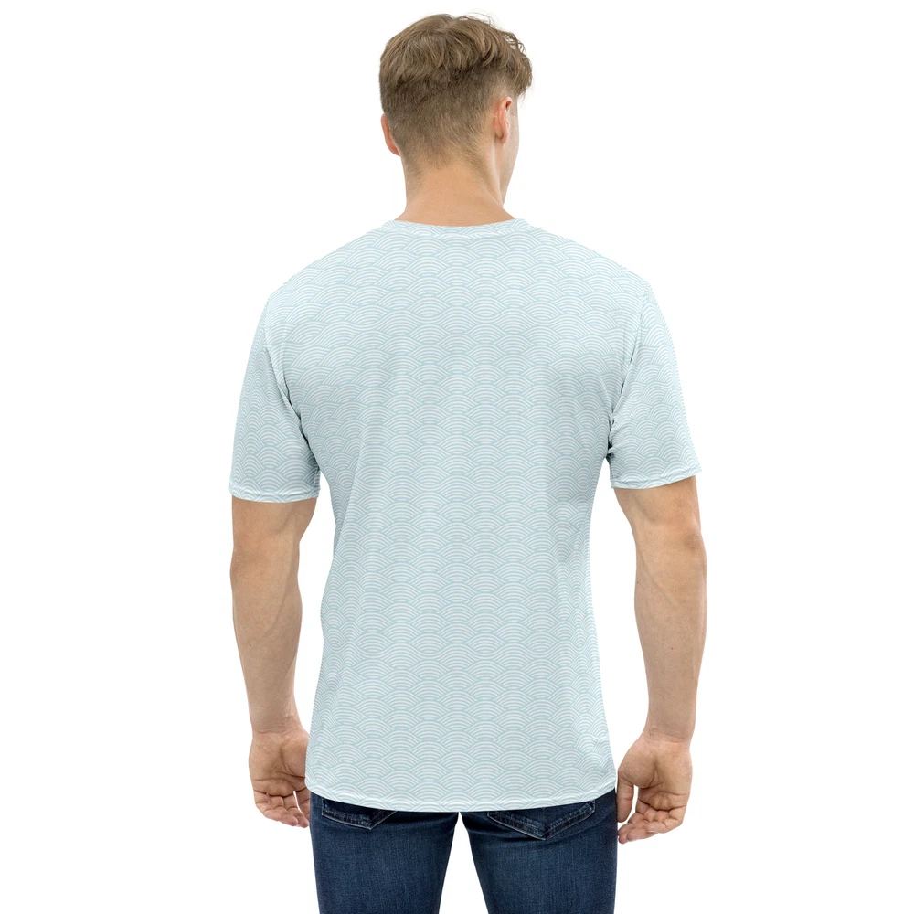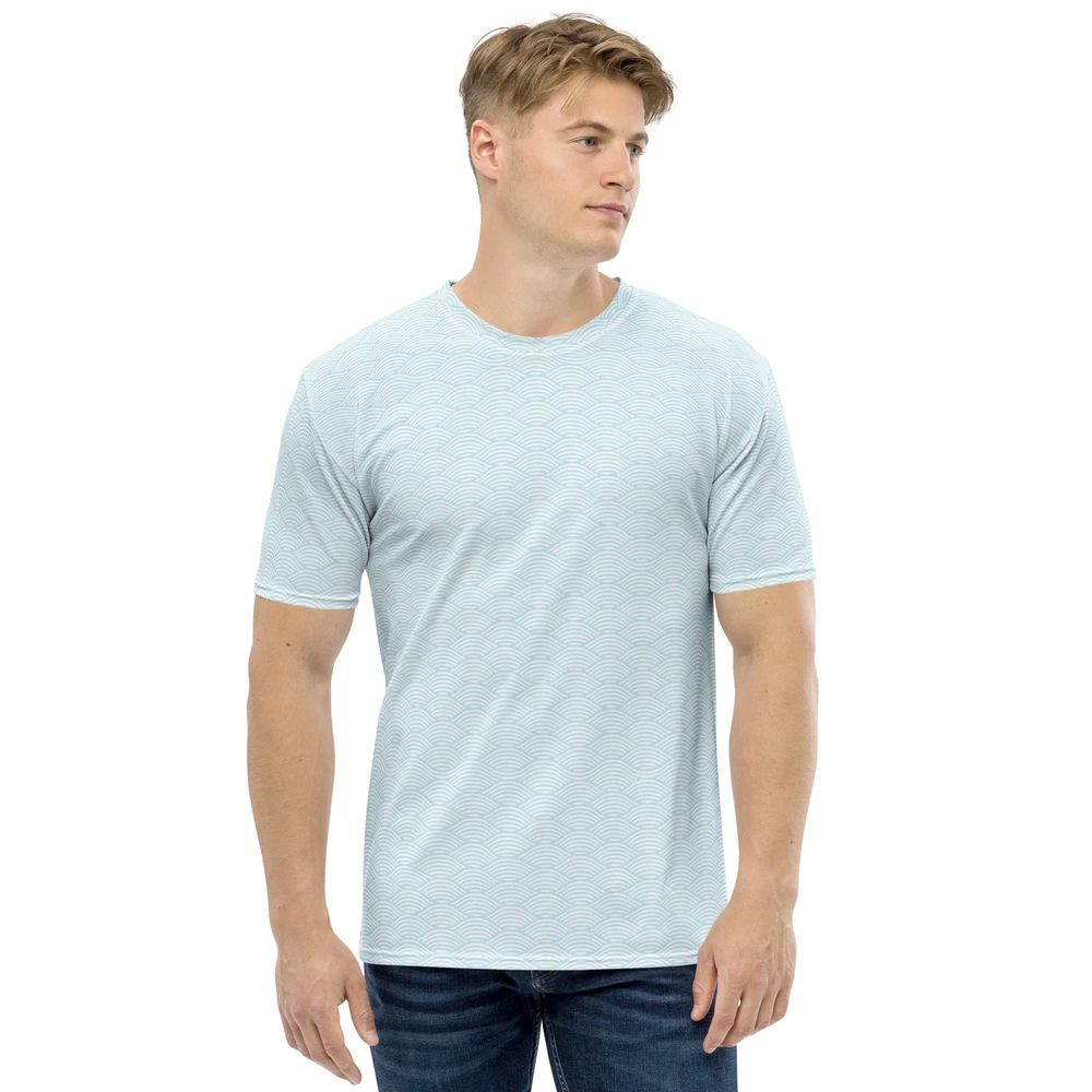 This shirt is a celebration of understated elegance, where the beauty lies in the graceful curves and rhythmic repetitions of the wave motif. The design, rendered in a harmonious palette, creates a visual symphony that captures the essence of fluidity and movement. As you wear this shirt, you embody the calm strength of the ocean, carrying with you the soothing energy of waves. Whether you're seeking a sophisticated look for a casual day out or aiming to elevate your ensemble for a special occasion, this shirt effortlessly merges fashion with art, offering you a piece that speaks volumes through its simplicity. Get to know your new favorite tee—it's super smooth, super comfortable, and made from a cotton touch polyester jersey that won't fade after washing. • Fabric composition in the EU: 96% polyester, 4% spandex • Fabric composition in the US: 93% polyester, 7% spandex • Premium knit mid-weight jersey • Four-way stretch fabric that stretches and recovers on the cross and lengthwise grains • Regular fit • Blank product components in the EU sourced from Lithuania • Blank product components in the US sourced from the US This product is made especially for you as soon as you place an order, which is why it takes us a bit longer to deliver it to you. Making products on demand instead of in bulk helps reduce overproduction, so thank you for making thoughtful purchasing decisions! Ships FREE in the USA! Checkout www.smackedshop.com to browse our entire collection! Size guide CHEST (inches) XS 31 ⅛ S 34 ¼ M 37 ⅜ L 42 ⅛ XL 46 ⅞ 2XL 51 ⅝ CHEST (cm) XS 79 S 87 M 95 L 107 XL 119 2XL 131