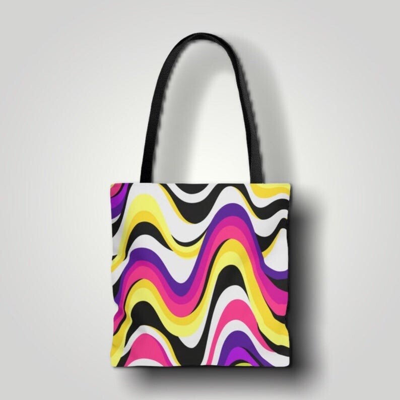Extremely strong and durable synthetic fabric that retains its shape and dries quickly. A second row of stitching makes the seams strong and durable. Front and back sides are sewn together by creating extra space on the sides, adding more room. .: 100% Polyester .: Boxed corners .: Black cotton handles .: Black lining .: Small 13”x13”