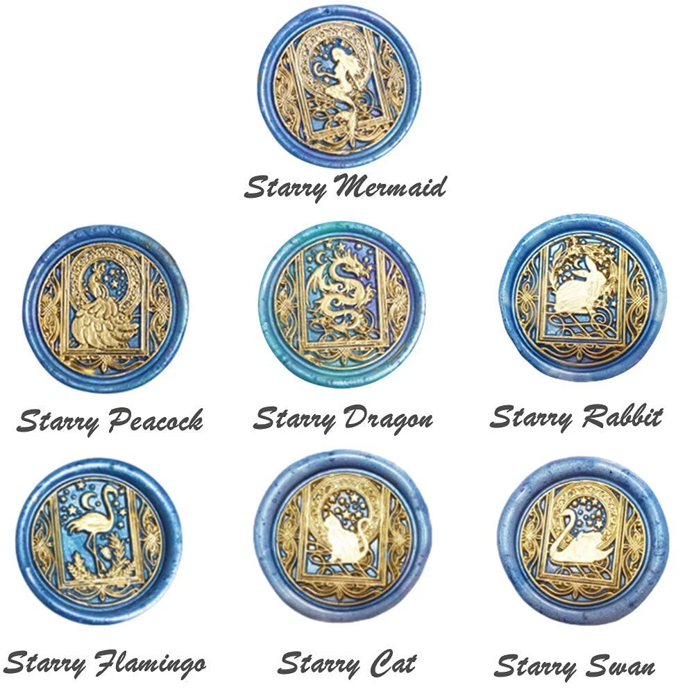 Why you choose 7PCS Starry Animal Wax Seal Stamp Kit? always provides the high-quality and durable goods in life. Our quality inspection team will check every item before shipping. Our Wax Seal Stamp Set Specification: Package Includes: 1 PCS Wooden hilt,1 PCS Starry Mermaid, 1 PCS Starry Peacock, 1 PCS Starry Dragon, 1 PCS Starry Rabbit, 1 PCS Starry Flamingo,1 PCS Starry Cat, 1 PCS Starry Swan wax seal stamp and 1 Gift box. Wax Seal Stamp Diameter: 1.2 inch / 3cm, Length: 3.54inch / 9cm. Materials: Vintage Brass Heads, Rosewood Handle Features of our wax sealing stamp and widely applications 1, The wax stamp set is with brass heads and rosewood hilt, which is durable and luxurious. 2, The suitable size wax seal stamp set is easy to install or exchange to a different stamp. 3, Wonderful gifts for your friend and yourself or just for collection. It would be an unique personalized creative romantic gifts for you and your family on Christmas Day, Birthday, Thanksgiving Day etc. 4, The custom wax seal stamp is widely used for customs, security, banking, insurance, legal, anti-counterfeiting packaging, high-end arts, crafts, gifts, stationery, daily necessities, craft gifts, invitations etc. Using Steps 1. Take some wax seal beads into the spoon. 2. Melting it in the spoon with the tea candle. 3. Pour the melting wax onto the place where you want. 4. After a few seconds, the seal from the paint can be lifted off carefully. Then it's done. Warm Notice 1. If the stamp stuck to the wax, keep it until the wax cool. Then you can more easily release stamp from the wax. Warranty Service If you have any quality issue or advises, feel free to contact us. We will provide a new goods exchange or money return and quickly reply within 24 hours. [High Quality Wax Seal Stamp kit] Our wax seal stamp set is easy to install or exchange to a different stamp. Our wax stamps are made of brass head and rosewood Hilt, which is durable and luxurious. [Package Includes] wax seal stamp kit includes 1 PCS Wooden hilt,1 PCS Starry Mermaid, 1 PCS Starry Peacock, 1 PCS Starry Dragon, 1 PCS Starry Rabbit, 1 PCS Starry Flamingo,1 PCS Starry Cat, 1 PCS Starry Swan wax seal stamp and 1 Gift box. [Suitable Size] Our Wax Stamp kit diameter is 1.2inch / 3.0cm. Length is 3.54inch/9cm. The suitable size of our wax seal stamp set makes it comfortable to use. [Widely Applications] Seal can be widely used for customs, security, banking, insurance, legal, anti-counterfeiting packaging, high-end arts, crafts, gifts, stationery, daily necessities, craft gifts, invitations etc. The sealing wax from our wax seal stamp kit can effectively help avoid opening important files. [Mysterious Gift Seal Stamp] The wax stamp set would be an unique personalized creative romantic gift for your lover, your family on Valentine's Day, Mothers’ day, Christmas Day, Birthday, Thanksgiving Day etc. The stamp kit is also a wonderful gift for your friend and yourself or just for collection.