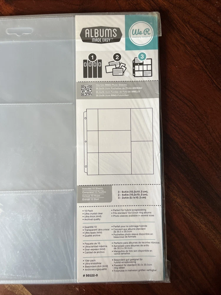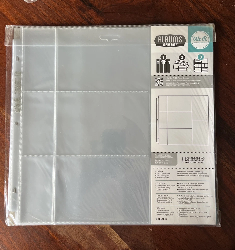 Brand: We R Memory Keepers Type: Photo Album Album Type: Scrapbook Albums Color: clear gtin13: 0633356501046 Album Size: 12x12 Size: 6x4, 4x6, 2x4 UPC: 0633356501046