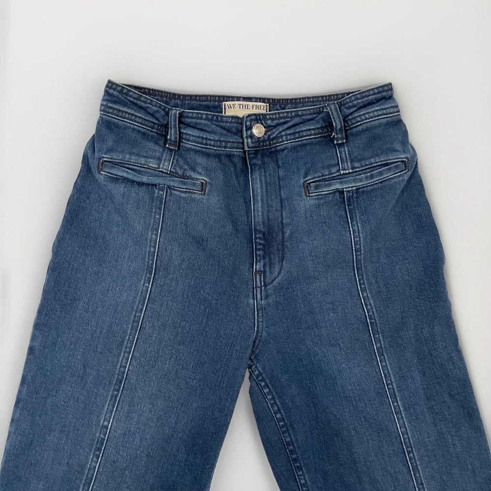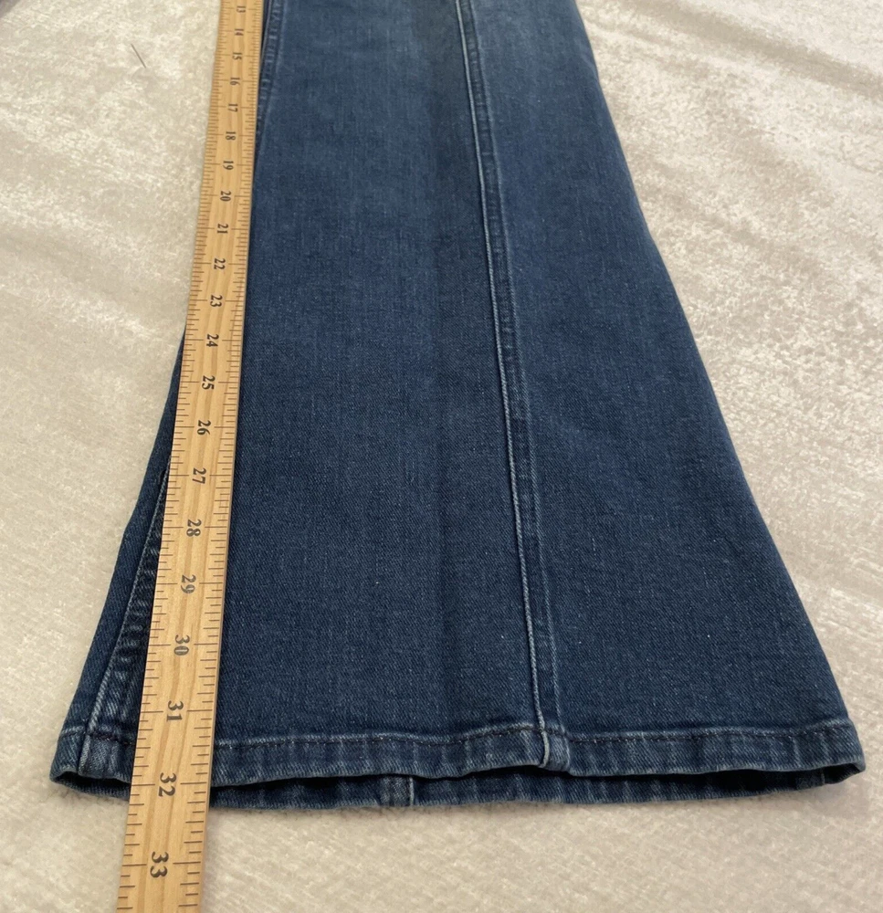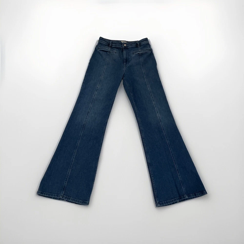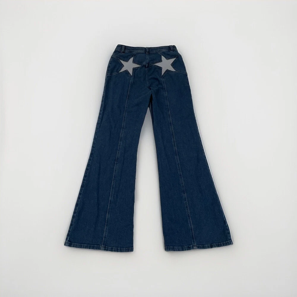 We the Free People Jeans 30 Firecraker Flare Silver Patch Star Back Pockets Style Profile/Aesthetics: retro Y2K Description/Specifics High Rise Medium Wash Flare Leg Stretch Silver Patch Back Pocket Button Zip Fly Color: Blue Denim Materials: 99% Cotton, 1% Elastane Washing Instructions: Dry Clean Measurements : Please see photos for approximate measurements taken laying flat (in inches), be aware that tagged and actual measurements may differ on pre-owned clothes due to prior wash or wear so please compare measurements to clothes you already have to ensure proper fit! Tagged Size: 30 Actual approximate measurements (inches), see pictures Waist: 29 Inseam: 32 Condition: This item has no observed holes, tears or stains. Please see photos for details, color may vary due to lighting! All preowned clothes have been cleaned prior to shipping Please reach out with questions!