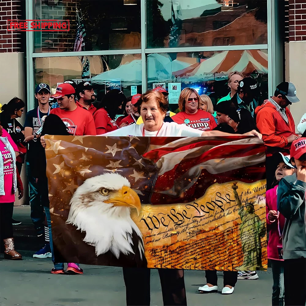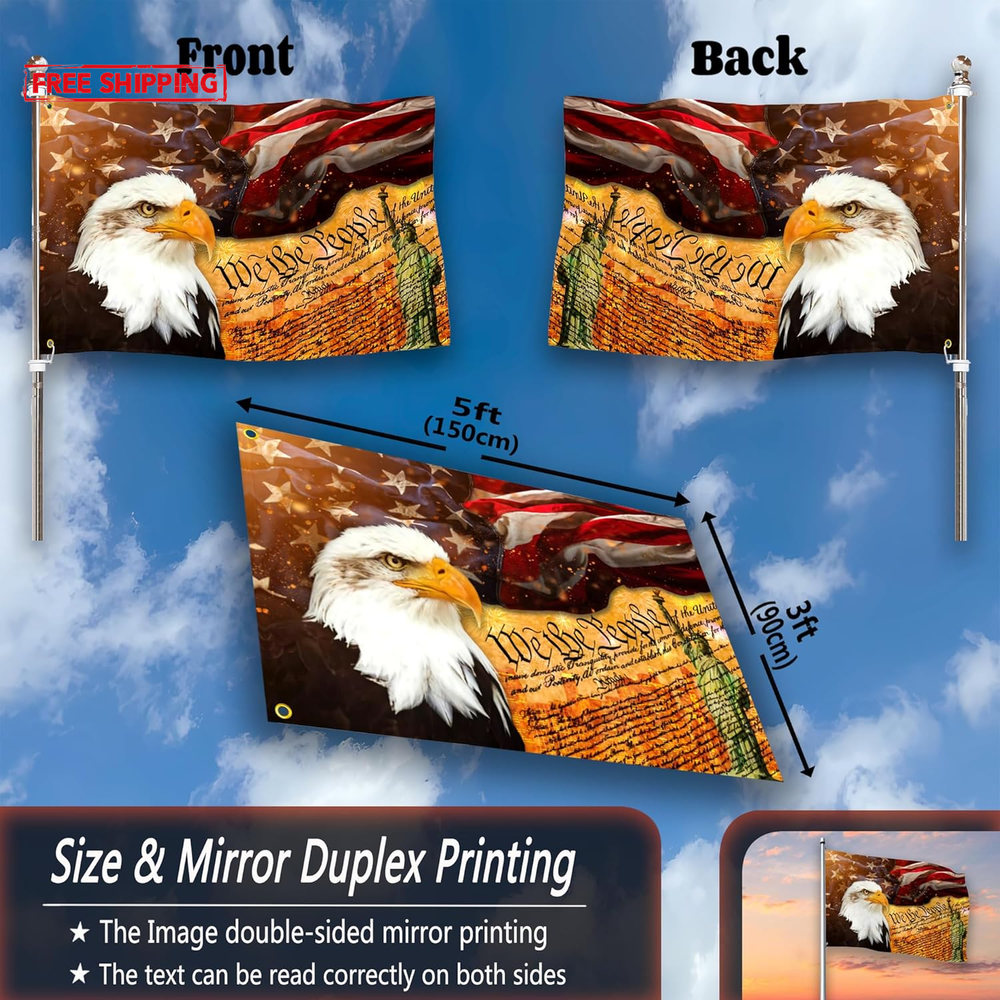 SHOW YOUR FAITH: Demonstrate your strong faith in the power of the divine with this stunning American Flag With An Bald Eagle On It with an eye-catching design. DURABLE: This we the people 1776 flag 3x5ft outdoor 100% polyester flag stands out because of its double-sided mirror printing, strong material and waterproof and UV-resistant coating, long-term use will not cause the flag to fade, and its ability to withstand strong wind and rain. AMERICAN EAGLE FLAG MULTI-FUNCTIONAL: Whether you are hanging the we the people USA flag 3x5 outdoor is double sided on your wall, waving it during a parade, displaying it in your house/yard, or using the freedom patriotic flag as a unique holiday gift, this american flag with statue of liberty is perfect for anyone occasion. SYMBOLIC AND INSPIRATIONAL: The combination of the 1776 we the people flag and the American flag creates a powerful visual statement of your devotion to God and country. Also a for patriotic flag is the best choice for outdoor garden decoration on 4th of July, independence day, memorial day, Labor Day, Easter, Thanksgiving, Good Friday, Halloween, Christmas or any other day you want to celebrate American. EASY TO INSTALL: With two brass grommets, you can set up this 1776 american July 4th yard outdoor flag banners for home on any flagpole in seconds, and its vibrant colors stay vibrant for a long time. (Please Note: Flagpole not included). Flag for Patriotic If you are looking for flags for parades, festivals or parties, especially during holidays like 4th of July or Memorial Day Decorations or any other day you want to celebrate America. We The People Patriotic Flag 3x5 is the choice of many people, the unique design and bright colors will attract attention, ideal way to fully display your patriotism!