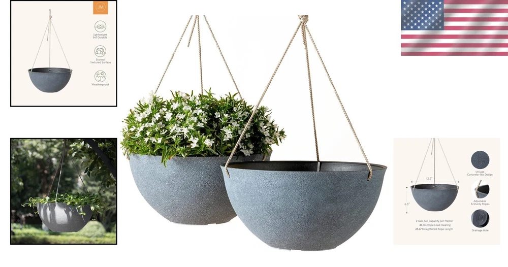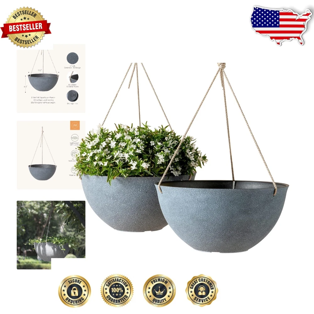 Weather-Resistant Large Hanging Planters - Set of 2 in Weathered Gray, 13.2 Inch ‹ › ‹ › ‹ › ‹ › ‹ › ‹ › ‹ › ‹ › ‹ › Weather-Resistant Large Hanging Planters - Set of 2 Transform your indoor and outdoor spaces with our stunning Weathered Gray Hanging Planters. Key Features: Set of 2 hanging planters with a spacious 13.2" (Upper D) x 6.3" H dimensions. Each planter holds a generous 2 gallons of soil, offering ample growth space for all your favorite plants, including pothos, ivy, and spider plants. Crafted from durable recycled plastic and natural stone powder, providing a thick, concrete textured finish while remaining lightweight for easy mobility. Designed with triple ropes that can bear up to 20kg (44 lbs) of weight, ensuring stability and durability for your luxuriant greenery. Contemporary industrial style seamlessly integrates with modern décor, adding a sophisticated splash of greenery wherever hung. Each planter includes 4 raised drainage holes to prevent over-watering, alongside a built-in water reservoir to maintain optimal hydration. Weather-resistant design allows for outdoor enjoyment in any weather, free from fading, frost, cracking and peeling. Why You Need These Planters: Envision your living space adorned with the elegance these hanging planters can provide. Their contemporary design effortlessly enhances both indoor and outdoor aesthetics, making them an ideal choice for any plant enthusiast or home decor lover. Whether you’re seeking to breathe new life into your home or cultivate a garden oasis, our Weather-Resistant Large Hanging Planters offer everything you need to ensure your plants flourish in style and comfort. Indulge in the beauty of nature; order your set of Weather-Resistant Hanging Planters today and elevate your botanical display to new heights! Shipping Free & Fast Shipping - We offer free shipping to most of the USA with a normal delivery time of 3-7 days. However, due to the current situation, additional delivery time (up to 3 weeks) may be required for some items. Alternative Carriers - We may use alternative carriers (e.g. USPS, FedEx, UPS, etc.) to ensure your package arrives safely and on time. Due to the use of multiple carriers, we are unable to provide a tracking number automatically. Handling Time - Orders are processed and shipped within 1-2 business days of receiving cleared payment. Shipping Restrictions - Shipping to Alaska, Hawaii, Puerto Rico, Guam, and other US territories may incur shipping charges or delivery restrictions. Please contact us before ordering, or your order can be refunded/cancelled. State Restrictions - There may be restrictions based on your state of purchase. For example, certain items may not be shipped to California due to state regulations. Contact for Tracking Updates - If you require tracking updates or have any concerns about the delivery of your order, please feel free to contact us, and we will be happy to assist you. Return 30-Day Hassle-Free Returns - We want you to be completely satisfied with your purchase. If you are not, you can return the item within 30 days of receiving it for a full refund or exchange. Easy Return Process - To start a return, simply contact us and we will provide you with a prepaid return shipping label and detailed instructions. Restocking Fee - There are no restocking fees for returns. However, the buyer is responsible for return shipping costs if the return is not due to a seller's error. Refund Processing Time - Refunds will be processed within 5 business days of receiving the returned item in its original condition. Payment We accept all major credit cards, PayPal, and Apple Pay for your convenience. Your payment information is secure and encrypted to ensure a safe and seamless transaction. Please complete your payment within 3 days of purchase to avoid any delays in shipping. Feedback Your feedback is extremely important to us. We strive to provide the best products and customer service possible. If you are satisfied with your purchase, please take a moment to leave us a positive review. If you have any concerns or issues with your order, please contact us before leaving negative feedback. We are committed to resolving any problems and ensuring your satisfaction. Contact Us If you have any questions or concerns, please feel free to reach out to our customer support team. You can contact us through the eBay messaging system. We are available Monday to Friday, 9:00 am to 5:00 pm EST, and we will do our best to respond to your inquiry within 24 hours. Buy it now and enjoy a pleasant shopping experience! UPC: Not Set Type: Flower Pot,Hanging Basket,Pot Set Includes: Flower Pot,Hanging Basket,Pot Compatible Plant Type: Flower,Herbs,Pothos Size: Large Material: Recycled Plastic,Natural Stone Powder Features: Drainage Hole,Weather Resistant Brand: Unbranded Item Height: 2 in Item Width: Not Set Item Length: Not Set Capacity: 2 gal MPN: Not Set Color: Gray Indoor/Outdoor: Outdoor Shape: Round Number of Items in Set: 2 Country/Region of Manufacture: Not Set Item Weight: 1 lb Personalize: Not Set