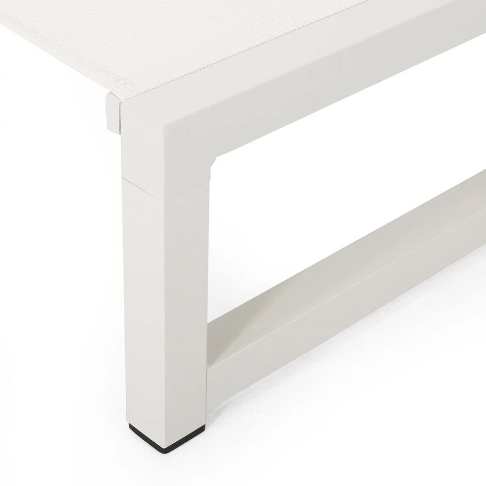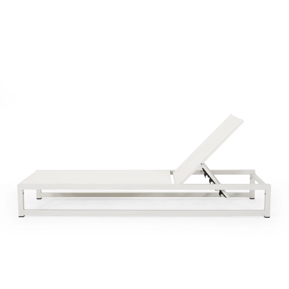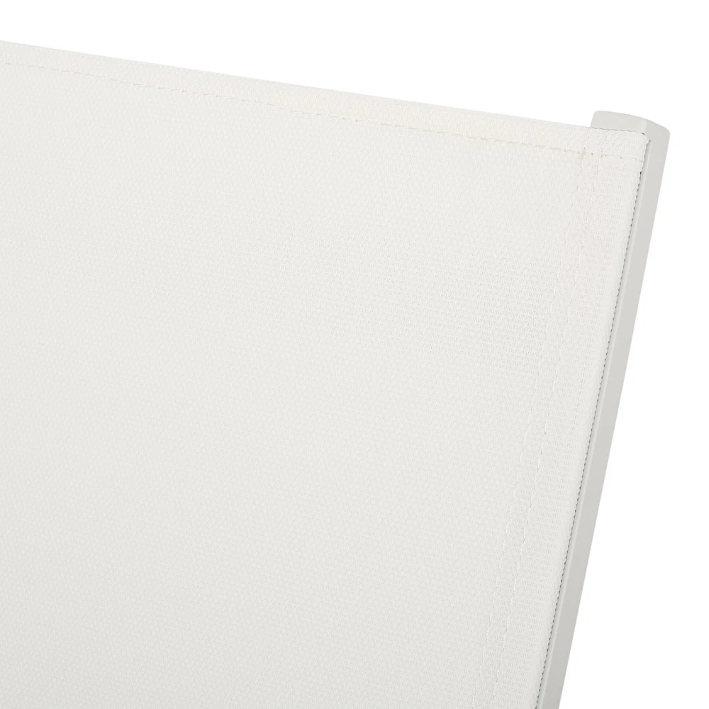 Specifications Place of Origin #originPlace# Main Color White Main Material Nylon Mesh Dangerous Goods #dangerFlag# Dimensions & Weights Assembled Length (in.) 77.00 Assembled Width (in.) 26.50 Assembled Height (in.) 10.50 Weight (lbs) 2.20 Product Features Adorn your patio space with a delightful classic chaise lounge set that is fully adjustable, giving you everything you need to turn your outdoor space into a resort. ALUMINUM FRAME: This chaise lounge is built with aluminum, creating a lightweight and stable frame. This material is rust-resistant which will further extend the life of your product. MESH SEATING: This features seating constructed of outdoor mesh material, making our chaise lounge both flexible and supportive. This lightweight material allows air to circulate and ventilates body heat on a hot day. ADJUSTABLE: Our chaise lounge offers adjustable seating to ensure maximum comfort. This chaise accommodates five different positions, including a fully reclined option. DIMENSIONS: Choose an accessory that is the perfect size for you and your furniture. This chaise lounge is 77.00” W x 26.50” D x 10.50” H and can open up to 77.10” W x 26.70” D x 34.25” H. You will love how much your space can transform with the simple addition of this charming lounge. ASSEMBLY REQUIRED: Some assembly is required for this chaise lounge. All of the instructions and tools needed for assembly are included. Hand-Crafted Details Dimensions: 77.00 inches deep x 26.50 inches wide x 10.50-34.25 inches high Description