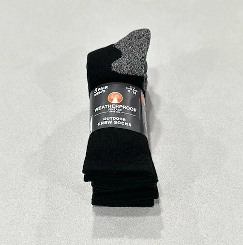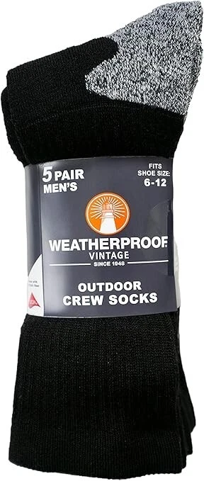 Weatherproof Vintage Men's Outdoor Wool Blend Crew Socks Size: Fits Shoe Size: 6-12 Color: Black Content: 44% Polyester / 38% Acrylic / 15% Wool / 3% Lycra Spandex