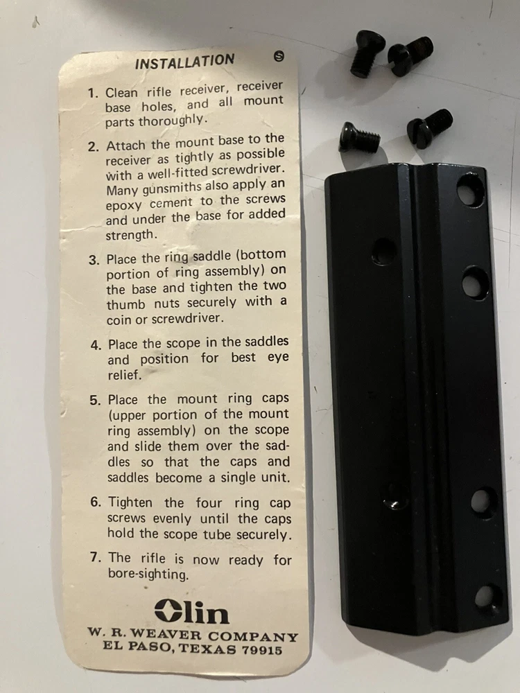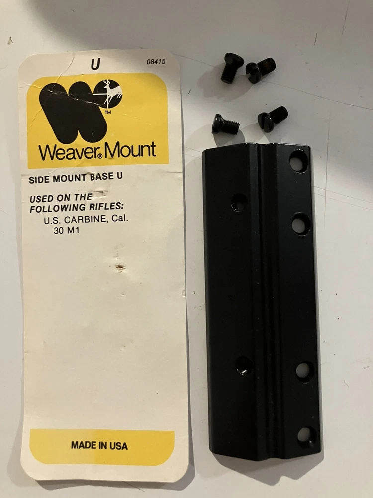 New Old Stock This Weaver Scope Base U is a top-quality product made in the United States. It is designed for use with a variety of guns including Sears, Herters, Marlin, H&R, Weatherby, and Browning. The base is made of durable aluminum and is perfect for shooting sports. The Weaver Scope Base U is specifically designed for side mounting and is compatible with Cal. 30 M1 cartridges. Its sleek black color adds a touch of style to your firearm. This product is an excellent choice for anyone looking to enhance their shooting experience.
