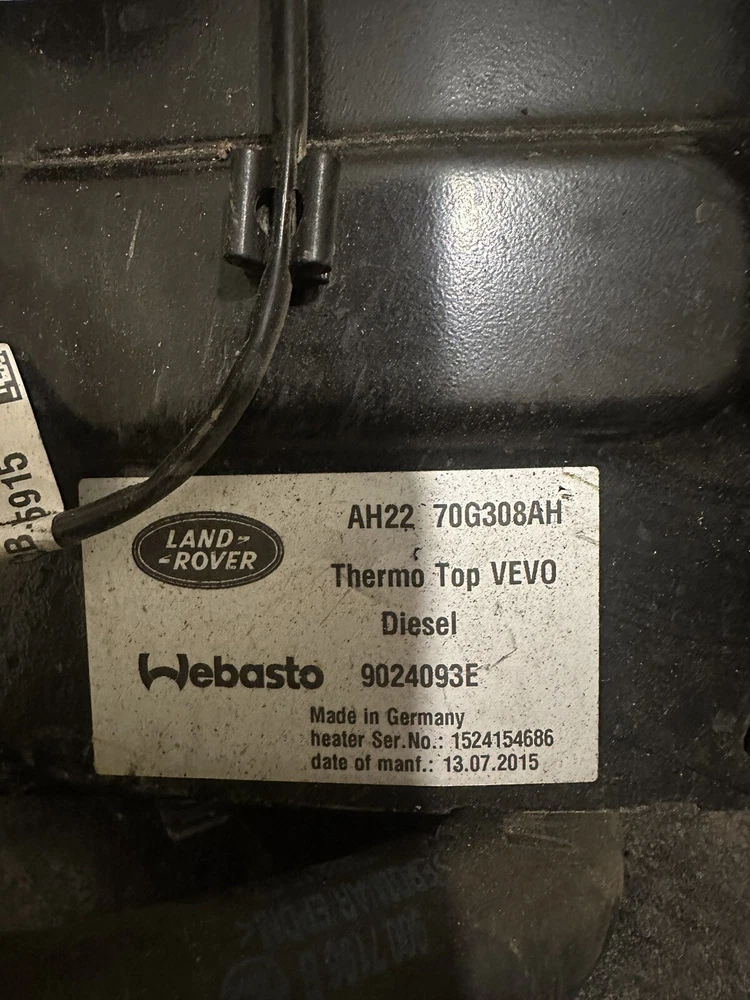 Webastow diesel pre heater removed from a 2016 Land Rover, ideal camper conversion The plug is damaged (please see pictures) the pins are exposed so still useable (please see pictures) Good working order Bidding starts at only £1 Grab a bargain