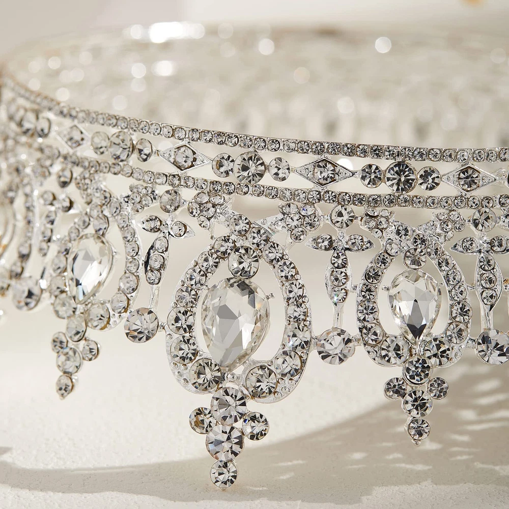 👸Material: Wedding crown is made of hard alloy and rhinestones. It's anti-rust, nickel free and anti-alleryic for safe wearing. 👸Size: Bridal crown measures approximately 2.68" in height, 5.43" in diameter, 0.53 lb in weight, Suitable for adults and teenagers. 👸Securing: Crowns for women is full crown design. Pin loops at the bottom of crown for extra . (Bobby pins included) 👸Occasion: The silver crown is ideal for weddings, anniversaries, engagements, proms, Halloween, parties, costumes, pageants, photography props, etc. It also can be used as a CAKE TOPPER. 👸: Feel free to us by if you have questions or need help. .