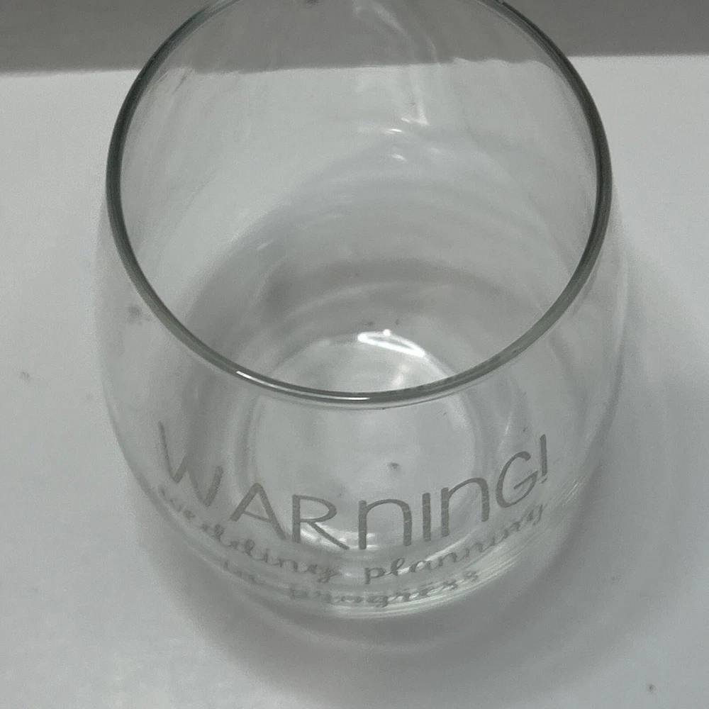 Elevate your toasts and celebrations with the "Warning! Wedding Planning In Progress" Wine Glass. This unique stemless glass, crafted for those who appreciate a blend of fun and functionality, boasts a clear glass material that showcases your beverage beautifully. Its round shape and 12 oz capacity make it perfect for your favorite wines, ensuring you enjoy every sip with a view to the blissful union of marriage. Measuring 5 inches in height and 3.5 inches in width, this 8 oz weighted glass is both a practical and decorative addition to your wedding-themed festivities or any joyous occasion. Handmade with attention to detail, this glassware is a delightful way to commemorate your special moments and shares a lighthearted message with every use.