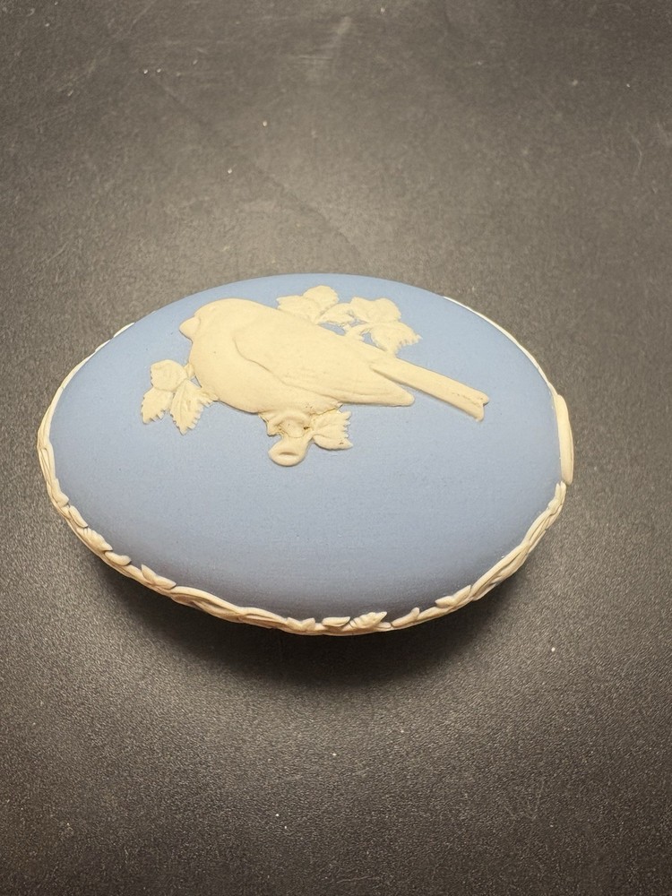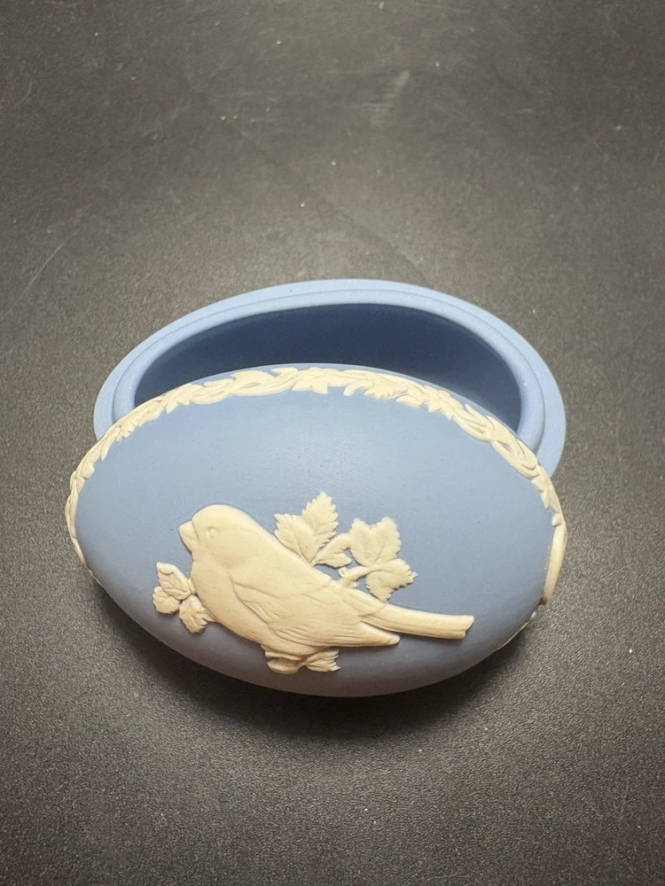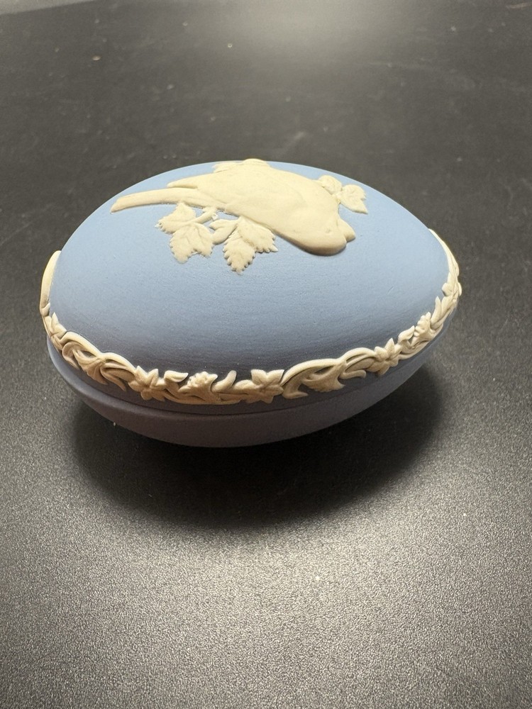 This vintage Wedgewood Blue Jasperware Egg Shaped Trinket Dish is a charming and elegant piece made in England. Crafted from ceramic and porcelain, this original trinket dish features the classic Wedgewood brand and the signature Jasperware style. The beautiful blue color adds a touch of sophistication to any space, making it a perfect addition to any collection or as a stylish decor item. All items are sold as is. We do our best to photograph any imperfections and list marks, scratches, or any other damage in the description. If you have any questions regarding an items condition please feel free to send us a message.