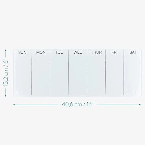 Return Policy Fast Delivery Trusted seller Weekly Whiteboard Planner - Small Dry Erase Glass Whiteboard to Do Calendar for Office Desk - Dry Erase Schedule Board - 16 x 6 Inches Product Description PLAN THE WEEK: Make note of any important meetings, remind yourself of tasks by creating a to-do list or simply organize your week, day by day, with this dry-erase whiteboard for your desk. It features every day of the week for easy planning. COMPACT: The compact design of this dry-wipe whiteboard means it takes up little space and makes it suitable for use on a desk, tabletop or counter. Make sure your weekly plan is always insight when it's needed! SPECS: The weekly planner measures 16 x 6 inches (40.5 x 15.2cm) and is made using tempered glass and stainless steel. Some assembly is required. You will also receive 1x marker pen (black). DRY ERASE: Rather than wasting pads of paper, use this dry erase board to plan your week. It can be wiped clean and used over and over again to plan every day of every week of every year! TEMPERED GLASS: Designed using tempered glass for a long-lasting and durable glass weekly planner whiteboard. The board is constructed to last for years to come. Shipping Returns Payment Shipping Shipping is FREE to all addresses other than APO/PO boxes in the lower 48 states. All our stock ships from US-based warehouses. Shipped via USPS or UPS (depending on location and package weight) Unless stated otherwise, all orders will ship within 24-72 hours of your payment being processed. Check our feedback to see the great reviews of FAST shipping we offer. Returns Seller does not accept returns Payment We currently accept payment via eBay managed payments only. Once payment is cleared, we will dispatch your shipment within 1-3 business days. Please refer to the "Shipping" tab for more information regarding shipping speed to your destination.