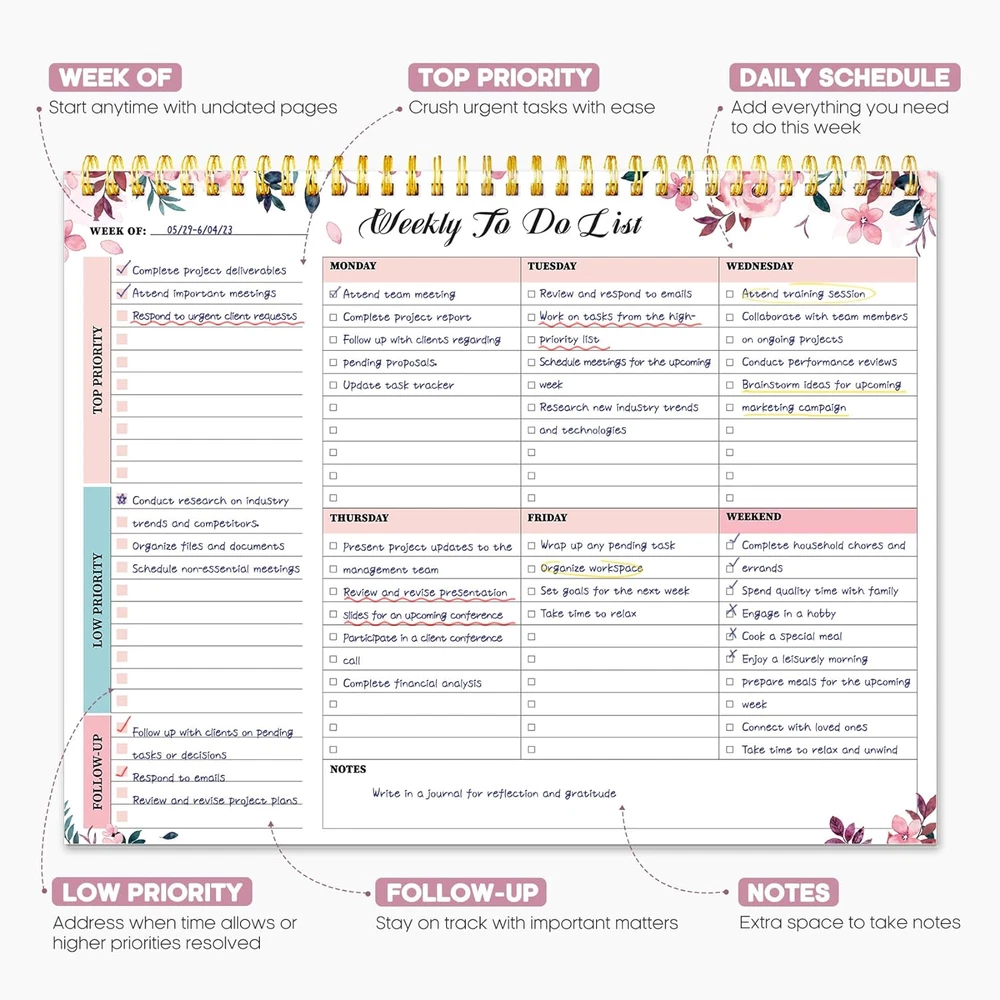 Store New Arrivals Add to Favorite View Feedback Contact Fast deliveries to the customer's home Quality customer service John Make the customers happy! Weekly to Do List Notepad with 52 Undated Sheets(8.5"×11")- Weekly Desk Planner for Women & Man, Work and Home - Whispering Petal Description Unleash Your Productivity Potential - Our weekly to do list notepad provides a complete system for managing your tasks. It includes a checklist, a top priority section, a low priority section, and a follow-up section, allowing you to categorize and prioritize your tasks effectively. Undated Weekly Planner - Embrace the freedom of an Undated Weekly Planner with 52 weeks of undated planning pages. No more wasted spaces or skipped dates – start your planning journey exactly where you left off, any time you want. This versatile planner allows you to stay organized in 2024, 2025, or even as far ahead as 2026! Functional Design - Our notepad features premium quality covers and twin-wire binding, providing durability and flexibility for smooth page-turning. The sturdy cardboard backing ensures stability on any surface, making it a reliable companion for your daily tasks. High-Quality Design - Our weekly desk planner is crafted with attention to detail, using premium quality 60-pound smooth white paper and a sturdy chipboard backing. Measuring at a convenient size of 11 X 8.5 inches (A4), it offers ample space for writing and planning your tasks. The clean and elegant design adds a touch of sophistication to your workspace. Versatile and Long-Lasting - Our desk planner is suitable for various uses, including office, home, school, or personal organization. It is made with high-quality paper to ensure durability throughout the year, making it a reliable companion for all your planning needs. Product Description TRANSPARENT COVER Long-lasting PVC cover with waterproof protection safeguards your sheets effectively. TOP TWIN-WIRE BINDING Effortlessly flip pages with the double spiral binding design. PREMIUM PAPER Inner pages feature high-quality acid-free 100gsm paper. The paper resists ink bleeding for a great writing experience. STURDY CARDBOARD Protect the back page from getting scratched and easy to write anywhere. Taja 2025 Planner & Christmas Cards Add to Cart Add to Cart Add to Cart Add to Cart Add to Cart Add to Cart Add to Cart Customer Reviews 4.7 out of 5 stars 35 4.7 out of 5 stars 204 4.7 out of 5 stars 19 4.9 out of 5 stars 12 4.9 out of 5 stars 12 4.9 out of 5 stars 12 4.9 out of 5 stars 12 Price $5.99 $ 5 . 99 $5.99 $ 5 . 99 $5.99 $ 5 . 99 $5.99 $ 5 . 99 $5.99 $ 5 . 99 $5.99 $ 5 . 99 $5.99 $ 5 . 99 Size 6.3" x 8.5" 5.5" x 6.7" 5.5" x 8.5" 4*6 4*6 4*6 4*6 Quantity 140 Pages / 70 Sheets 136 Pages / 68 Sheets 120 Pages / 60 Sheets 6 Designs / 24 Pack 6 Designs / 24 Pack 6 Designs / 24 Pack 6 Designs / 24 Pack Paper Weight 100 gsm 100 gsm 100 gsm 300 gsm 300 gsm 300 gsm 300 gsm Year Jan 2025-Dec 2025 None None None None None None Format Weekly & Monthly Password Book Sketch Book Christmas Cards Set Christmas Cards Set Christmas Cards Set Christmas Cards Set Sheet Size A4 Calendar Type Weekly Format Organizer Paper Size A4 Color c. Whispering Petal Material Type Paper Cover Material Polypropylene Material Paper Binding Spiral-bound Pages 52 Pages Item Weight 14.72 ounces Recommended Uses For Product Weekly planning, managing tasks, and organizing schedules for various purposes such as office work, home tasks, school assignments, or personal activities Ruling Type Ruled Additional Features Undated Weekly Planner Target Audience Adult Item Dimensions L x W 11"L x 8.5"W ABOUT US We offer the best prices around on high quality products. Our E-store includes media such as books, movies, music and games while offering electronics, toys, sporting apparel, clothing, tools, general home, garden items and more. SHIPPING We are always working hard to ensure your package arrives as soon as possible. Please understand that some factors like weather, high postal traffic, and the performance of shipping companies are outside of our control. We offer free shipping to the lower 48 states and ship within 2 business days of payment, usually sooner. We do not accept P.O. Boxes. Please provide a physical address. For shipping outside of the continental USA, we only use eBay's Global Shipping Program. The item is shipped to KY and then sent to the rest of the world. International customers are responsible for all duties and taxes. Continue to 'check out' to calculate costs for shipping the item to your country. Messages regarding eBay's Global Shipping Program MUST be directed at eBay EXCLUSIVELY. RETURNS We offer a 30-Day Return Policy on items in which you are not completely satisfied with. You have the option of a full-refund or an exchange of the item. No returns are available on items shipped outside of the USA PAYMENT We accept PayPal. CONTACT US This page content is yet to come Please ad us to your favorite seller and visit again later Thank You CUSTOMER SATISFACTION We try our very best to make sure every customer is completely satisfied. If there's a problem, message us! We're happy to help. WE ACCEPT