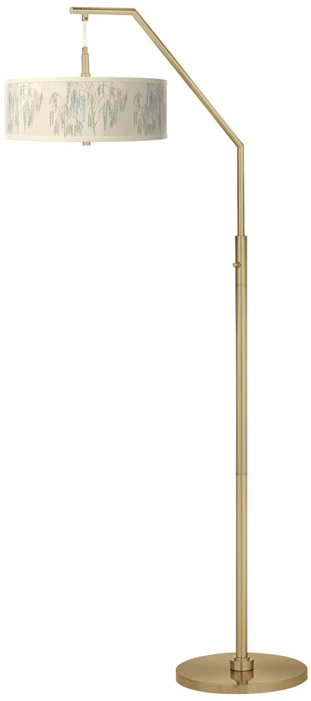 Shop Sale > Chandeliers Ceiling Lights Lamps Wall Lights Outdoor Lights Fountains Ceiling Fans Furniture Decor Weeping Willow Giclee Warm Gold Arc Floor Lamp Style #370G8 PRODUCT DETAILS: 71 1/2" high overall. Base is 14" wide. Shade is 16" across the top x 16" across the bottom x 5 1/2" high. Weighs 23 lbs. Uses two maximum 100 watt standard-medium base light bulbs (not included). 4-position stem column switch. Switch positions: Right bulb on, left bulb on, both on, both off. Contemporary arc floor lamp from the Giclee Glow brand. Translucent Weeping Willow shade. Shade has the exclusive pattern and is custom made to order. Shade printing process U.S. Patent # 7,347,593. Warm gold finish. Metal construction. 8-foot long cord. DESCRIPTION: Add style with this contemporary arc floor lamp design. It features a warm gold finish and a shade with a bottom diffuser to prevent glare. The shade shows off an exclusive Weeping Willow shade pattern and is giclee printed and made to order. Stem switch allows for two different lighting levels for ultimate convenience. Shade printing process U.S. Patent # 7,347,593. *Free Shipping applies only to orders shipping to the 48 continental United States that qualify and meet the minimum purchase requirement; standard shipping only and select products excluded, including freight and oversized items. Free Returns valid on select items in United States only; does not apply to freight, clearance, Daily Sale, designs with giclee art shades, Color Plus and Tiffany Color Plus brand items, or certain items with designer shades.