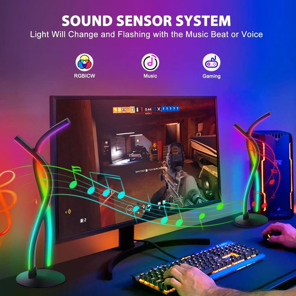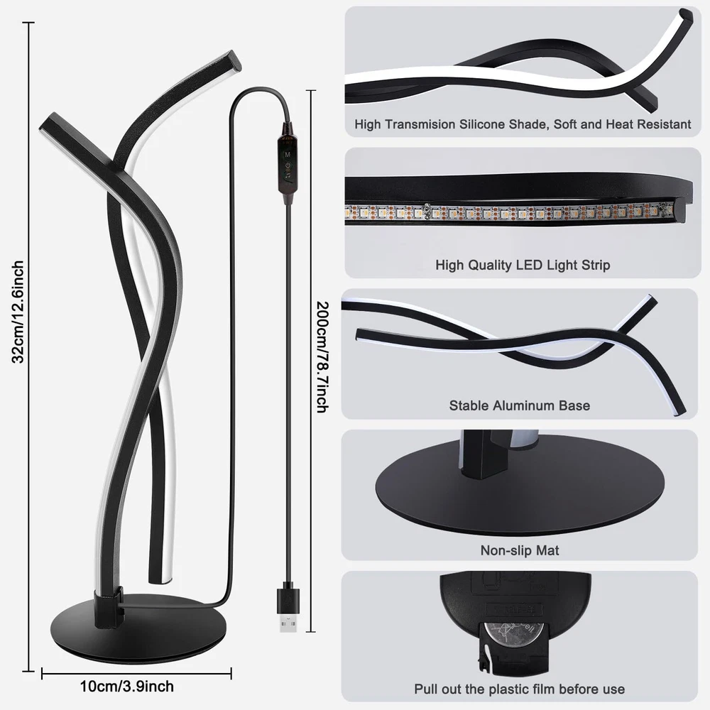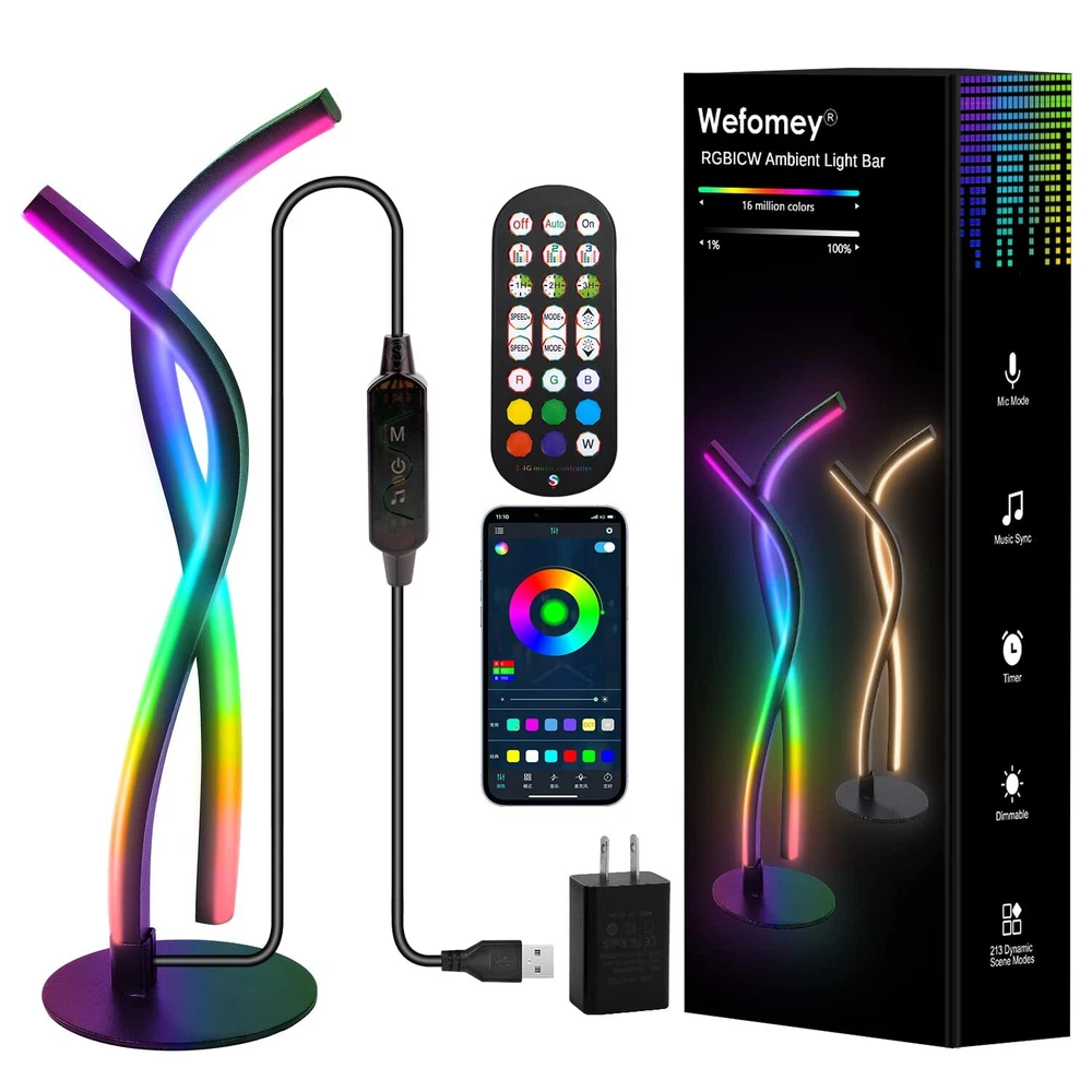 Dynamic RGB Colour and 3000K Warm White Light: Our RGBW LED Table Lamp whit IC, it creating a warm white and rainbow effect of lighting that uses 16 million colors. It can display multiple colours at the same time in one line, and create RGB rainbow colors or chasing effects, but also a regular RGB strips to display single colour in one line. Each of which can be adjusted brightness and speed levels from 0%-100%. Sync with Music: Smart table lamp built-in mic receiving external sound sources, the led desk lamp sync your music, movie, and gaming audio without delay and perform dynamic rhythm changes of lights, the color changing atmosphere lamp bring an immersive sound and light experience like no other. It can be used as a desktop atmosphere light, mood desk lamp, TV backlight, gaming light bar, etc. especially suitable for parties, holiday and event, like Halloween, Christmas and more activities. Smart APP Control: There are 3 control methods of our led table Lamp, you can adjust your decorative table lamp directly through the RF controller on itself or the remote control. In addition, the APP control on smartphone is the most convenient way, you will have access to lighting modes, controlling countdown timing function to turn off the lamp, adjusting the speed and brightness and switching the rhythm mode. Just control your home atmosphere at any time without leaving your sofa or bed. Reliable Quality and Widely Used: Modern nightstand lamp is made of high quality aluminium and premium silicone, stable and not easy to tilt. It adopts USB socket design, stylish and simple mood desk lamp not only a creative, unique, elegant and stylish table lamp, but also an excellent home decoration, very suitable for decorating your bedroom, dining room, kitchen, TV, bar, office, living room, bedside table, desk. It is a ideal gift for your family and friends. Easy to Assemble: Unlike traditional sticky LED strips, this RGB light bar can be placed anywhere. It's designed with strong and sturdy structure which connected with screw, there will be no loose trouble after installation. The base is made of stable and durable aluminum with anti-slip mat, without worrying about stability base. If you have any problem with the product received, please contact us through Amazon, we will provide a satisfactory solution within 24 hours.