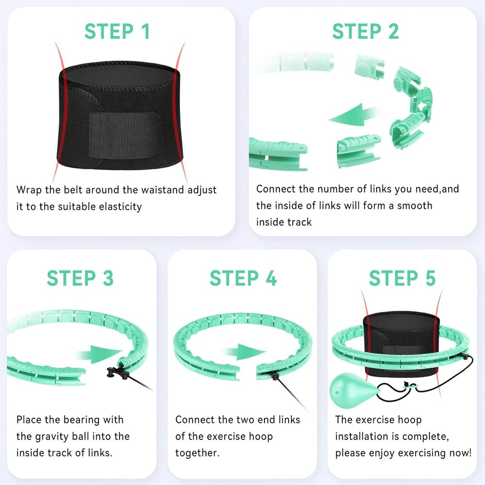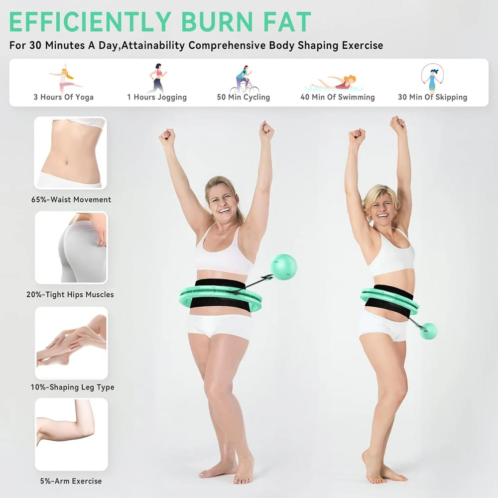 1. This weighted hula hoop is a game-changer for home workouts! The adjustable size fits perfectly, and the added weight makes it super effective for toning and burning calories. Love that it comes with a sweat belt—keeps me motivated while waist training. Super easy to assemble and use, definitely worth it for anyone looking to slim down and have fun while exercising!