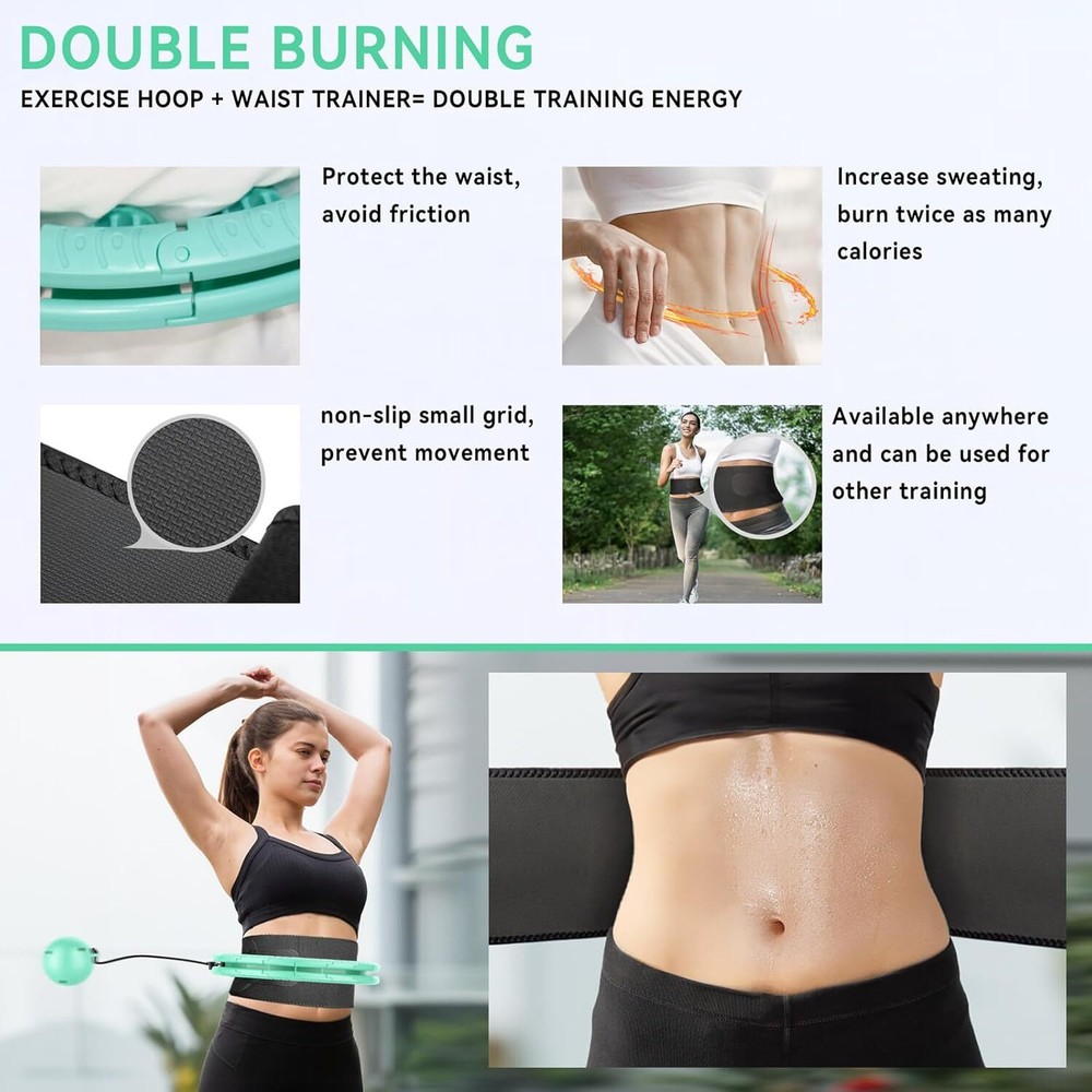 Weighted Hula Hoop for Adults Weight Loss,Infinity Weighted Hoop Plus Size with Sweat Belt,Waist Trainers for Women,Exercise Hula Hoop Womens Weight Loss At Home Item Description About this item 【Infinity Fitness Hoop】Our fitness hoop consists of 24 detachable knots,For all sizes between 30 inches (14 links) and 47 inches (24 links),infinity hoop plus size which can be adjusted easily according to your waistline. 【weighted Hula Hoop】Doing the hula hoop exercise after wearing a waist trainer. Effective Calorie Burning, double sweat, is an hula hoops for adults weight loss, also exercise hula hoop, will not fall, beginners can also use. 【Don't Worry】for the common sports circle loud noise, stuck, broken problems, this hula hoop made material improvements to make it stronger, not easy to damage, smooth use. 【waist Trimmer】infinity exercise hoop with sweat belt,It is also equipped with a laundry mesh bag, in which used sweat belts can be placed for direct machine washing. 【Enjoy Sports】 Pay attention to the surrounding environment before use to prevent the gravity ball from hitting the furniture. Also, if there is any problem with our hula hoop, we will send you another one for free. › See more product details infinity weighted hoop plus size Payment We accept payment only through PAYPAL Shipping We ship products worldwide through standard express courier service, it will reach within 7 to 10 days to abroad buyers, we ship the product after recieved clear payment and give full information about shipment to the buyer Return We accept product return within 7 to 21 days from delivery date but product should be in original position and not in damaged condition,the return shipping charges will be buyer responsibility