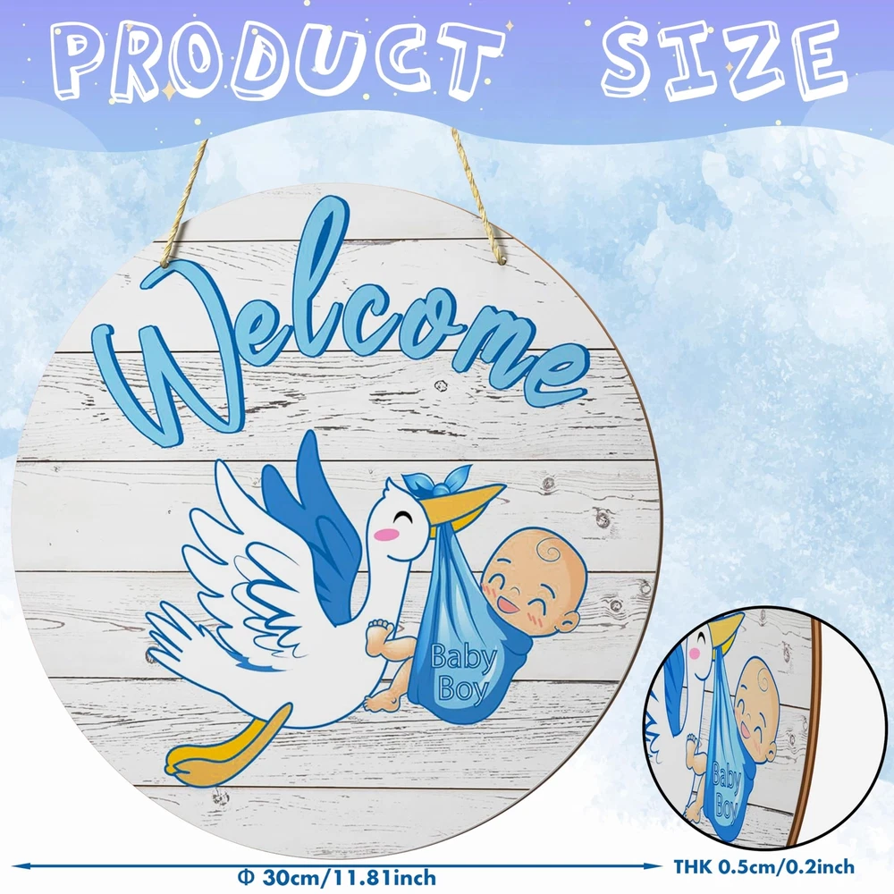 Welcome Baby Boy Sign Front Door Decoration, 12 Inch Round Wood Sign Wall Hanging Outdoor, Farmhouse, Porch, Front Door Sign Decor for Baby Shower Gender Reveals Birthday Party Supplies Product Details Style: Baby Boy1 Brand: TESAFNG MPN: TG-WoodSign UPC: Does not apply EAN: Does not apply Color: Blue Brand: TESAFNG Material: Wood Theme: Welcome Recommended Uses For Product: nurseries, baby showers, gender reveal parties, and baby-related events Included Components: Hanging hardware Brand Name: TESAFNG Recommended Uses For Product: nurseries, baby showers, gender reveal parties, and baby-related events Material Type: Wood Shape: Round Style Name: Baby Boy1 Theme: Welcome Color: Blue Item Dimensions L x W: 11.81"L x 11.81"W Pre Printed Text: Welcome Baby Boy Mounting Type: Door Mount Unique Design for Baby's Room: Our welcome baby sign features a unique and adorable design that will complement any nursery decor. With charming illustrations and heartfelt messages, it's the perfect addition to welcome your little one into the world Premium Quality Material: Crafted from high-quality wood, our hanging round wood sign is sturdy and durable, ensuring it will last for years. You can trust it to stand the test of time and stay looking beautiful throughout your baby's childhood Easy to Hang & Display: This holiday front door sign is lightweight yet sturdy, making it easy to hang on doors, walls, or any other flat surface. The included hanging hardware ensures a secure and hassle-free installation Versatile & Multi-Purpose: This welcome baby decorations is not just for nurseries! It can also be used as a charming decoration for baby showers, gender reveal parties, or any other baby-related event. The versatile design and colors make it a perfect fit for any occasion Thoughtful Gift Idea: Whether you're a new parent or shopping for a friend, our baby wooden sign is a thoughtful and practical gift. It's a beautiful way to celebrate the arrival of a new baby and will bring joy to any parent's heart