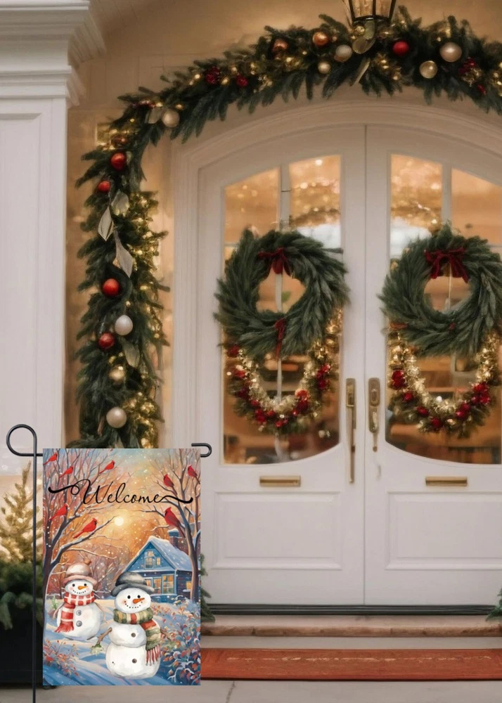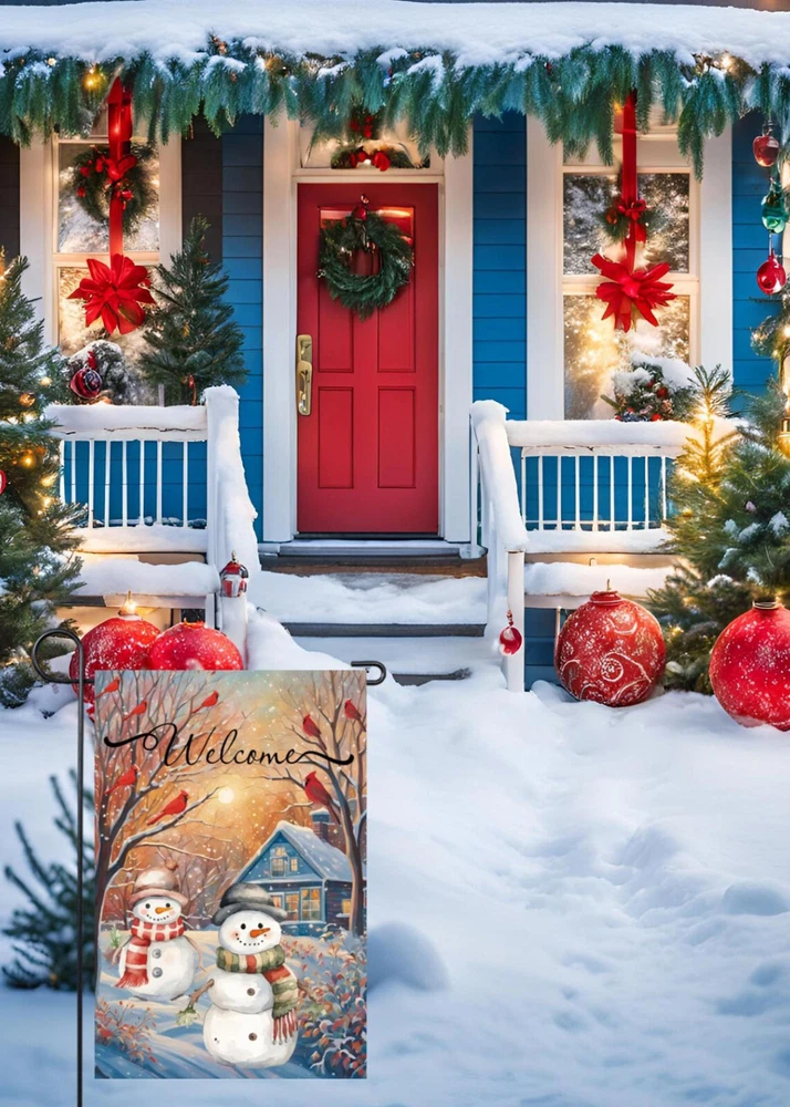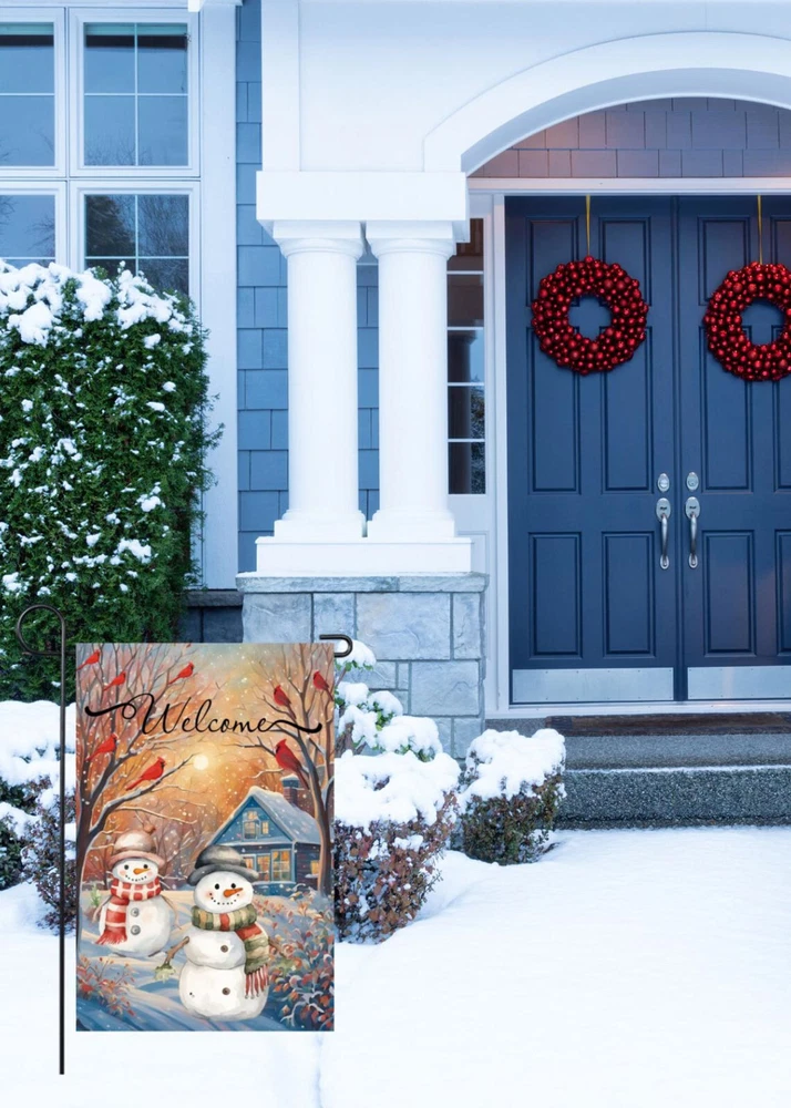 Product Description: Brighten up your winter garden with this charming Snowmen Cardinals Trees Garden Flag. Featuring two playful snowmen adorned in winter hats and scarves, surrounded by trees, bright red cardinals, and softly falling snowflakes, this festive flag is perfect for the holiday season. Made from premium polyester fabric, it offers durability and longevity, ensuring it will be a beautiful accent in your outdoor space for seasons to come. The flag showcases meticulous double sided printing, so the delightful design is visible from every angle. Reinforced with double stitching and a robust two layer construction, it stands strong against the elements. UV protection ensures the colors remain vivid and eye catching, resisting fading even under prolonged sunlight exposure. Key Features: 1. Double Sided Flag 2. Double Stitching 3. Two Layer Design Garden Flag 4. Size 12” x 18” 5. UV Protected/Fade Resistant Premium Polyester Fabric Note: Includes a 12” x 18” garden flag only. Flag stand is Not included. Kindly be aware that manual measurements may lead to minor differences.