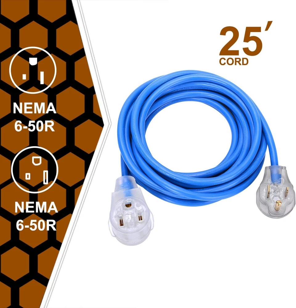 Welder Extension Cord, Heavy Duty 25 Feet 6-50 Nema R Plug Lighted Blue