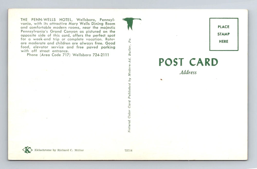 Era: Vintage Material: Paper Country: USA Theme: Cities & Towns Country/Region of Manufacture: Unknown City: Wellsboro Subject: Cities & Towns Region: Pennsylvania Postage Condition: Unposted Original/Licensed Reprint: Original Size: Standard (5.5 x 3.5 in) Unit of Sale: Single Unit Type: Printed (Lithograph)