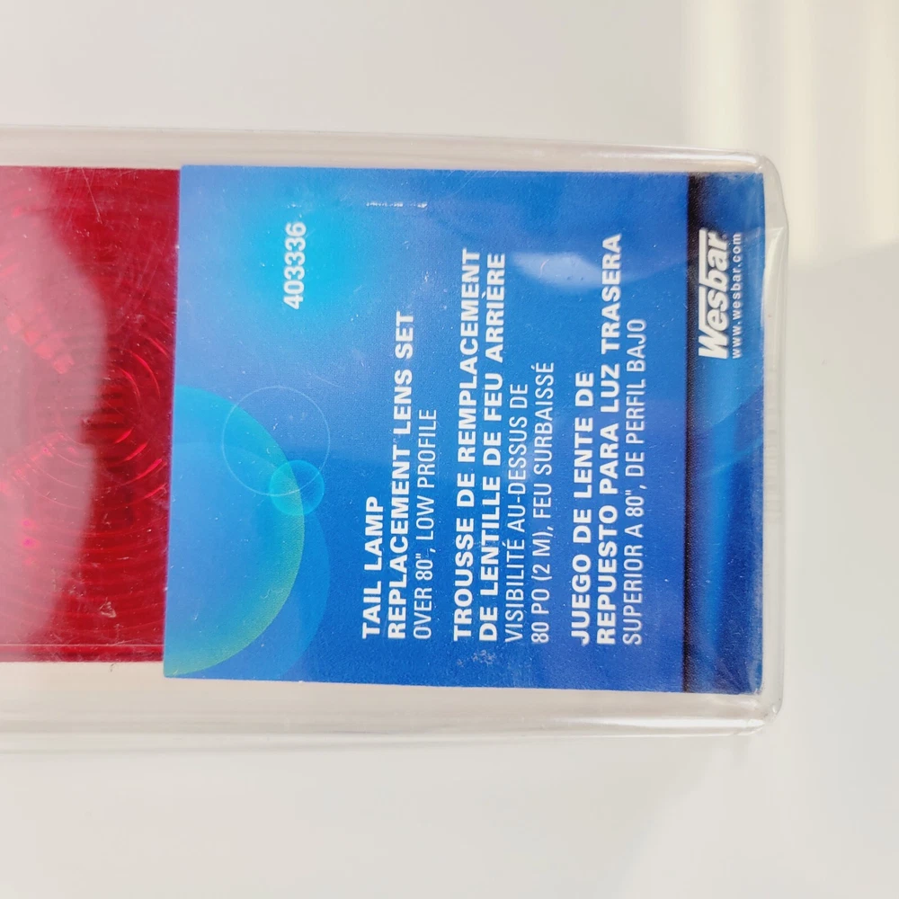 - Wesbar 403336 Red Tail Lamp Replacement Lens Set Low Profile w/ Screws - Part Number: 403336 - 30 DAY WARRANTY - PRIORITY SHIPPING - CHECK OUR FEEDBACKAND BUY WITH CONFIDENCE ---------------------------------------------------------------------------------------------------------------------- Fitment: The Wesbar 403336 Waterproof Low Profile Tail Light Replacement Lens Set is the replacement lens for the following Wesbar low profile tail lights: 403076 006554 403026 006504 Lens Dimensions: 8" long x 2-7/8" wide. ALL OEM PART NUMBERS ARE PROVIDED FOR YOUR REFERENCE *INTERCHANGE ISDETERMINED BASED ON SEVERAL FACTORS AND RESEARCH DONE BY OUR SALES TEAM, PLEASE CONFIRM WITH YOUR LOCAL DEALER THE EXACT INTERCHANGE* -------------------------------------------------------------------------------------------------------------------- Shipping : Shipping is same day priority if ordered before 2:00pm Eastern Time. We ship Monday - Friday -------------------------------------------------------------------------------------------------------------------- Warranty: This item comes standard with a 30 day parts warranty. If in the event this item fails and a replacement item cannot be supplied a full refund will be issued once the item is returned back to us in its original condition Stock# 5036-E13