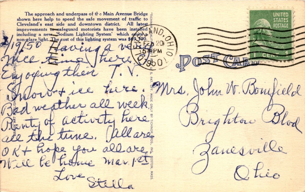 MAKE AN OFFER. THE MORE YOU BUY THE BETTER DEAL I WILL ACCEPT The front of the postcard features a view of the 48 West Approach and Underpass of the Main Avenue Bridge in Cleveland, Ohio. The postcard highlights the improvements made to ensure the safe and efficient movement of traffic to Cleveland's east side and downtown district.
