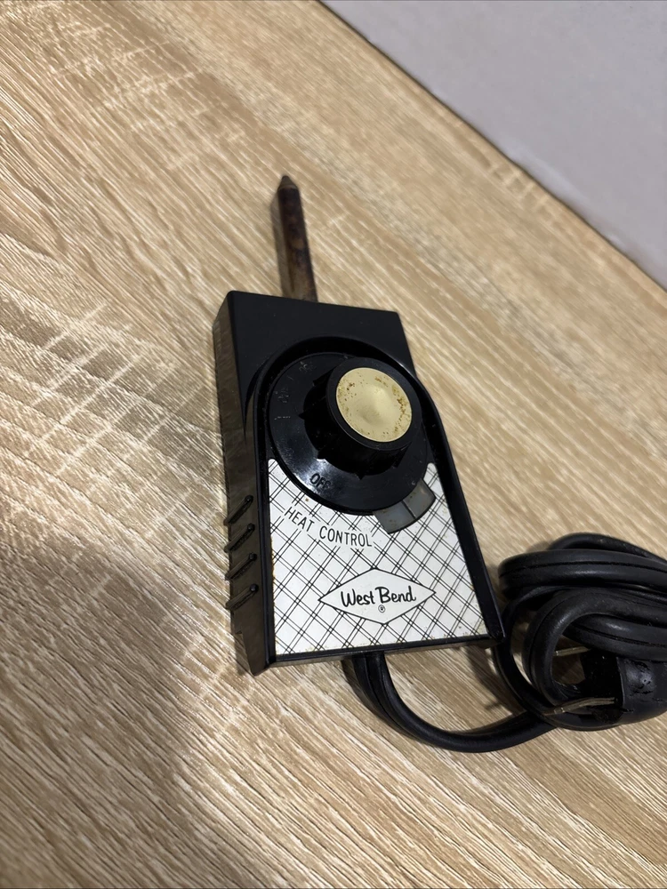 The West Bend 3580E Electric Skillet is equipped with a temperature control feature, allowing you to easily adjust the heat for cooking your favorite dishes. This model includes a specific heat control probe and power cord (E29583-9900) designed for precise temperature regulation during use. With its convenient griddle design, this electric skillet is a versatile addition to any kitchen, offering a reliable and efficient cooking experience.