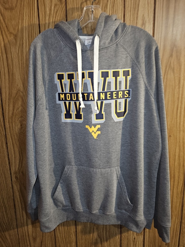 Color: Gray Sport: Football Brand: Captivating Apparel Country/Region of Manufacture: China Gender: Women Pre & Post Season: Regular Season Size: XL Player: N/A Team: West Virginia Mountaineers Officially Licensed: Yes Product: Sweatshirt