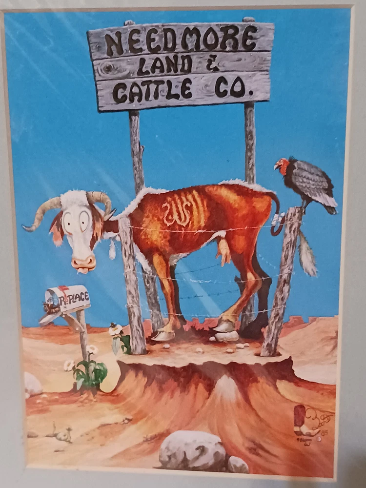 This Art Work Is From The Estate Of Hugh LaBere One Of The First Showroom Owners At The Denver Merchandise Mart . These 2 Boots Roy Reynolds Open Edition Prints #1.Need More Land And Cattle Co. # 2. Spot The Cow . Boots Was Just One Of The Many Lines My Step Dad Represented He Knew Many Of The Artists Personally And These Are From His Personal Collection That He Wanted To Open An Art Gallery With . My Stepdad Hugh Earned The Title" The Living Legend" You Are Much Missed! COWBOY UP, Love Your Daughter Sheila. Thank You For Looking ! Or Buying ! H 8" X W 10" Still Sealed In Original Plastic His Bio Is On The Back Of Each Picture