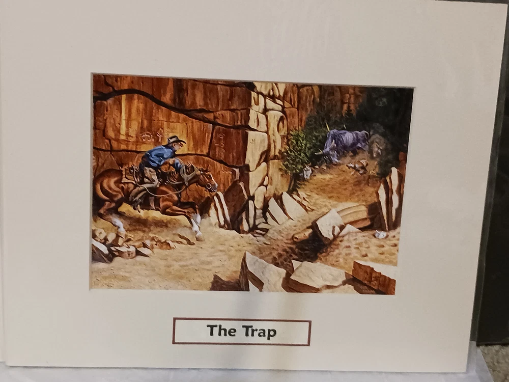 This Art Work Is From The Estate Of Hugh LaBere One Of The First Showroom Owners At The Denver Merchandise Mart . These 2 Boots Roy Reynolds Open Edition Prints #1The Trap. # 2. Bearly Safe . Boots Was Just One Of The Many Lines My Step Dad Represented He Knew Many Of The Artists Personally And These Are From His Personal Collection That He Wanted To Open An Art Gallery With . My Stepdad Hugh Earned The Title" The Living Legend" You Are Much Missed! COWBOY UP, Love Your Daughter Sheila. Thank You For Looking ! Or Buying ! H 8" X W 10" Still Sealed In Original Plastic***** His Bio Is On The Back Of Each Picture