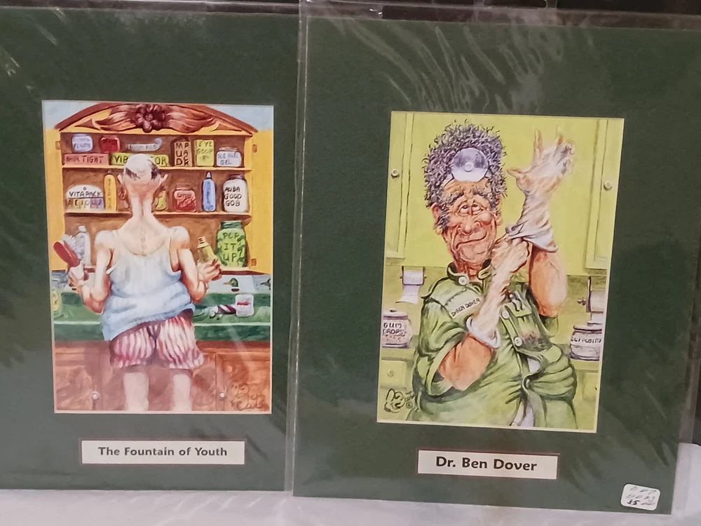 Country/Region of Manufacture: United States Unit of Sale: Set Listed By: Dealer Custom Bundle: Yes Bundle Description: 2 8x10 Matted Art Prints New In Original Packaging Material: Offset Lithograph Title: Fountain Of Youth. Dr Ben Dover Image Orientation: Portrait Style: Cartoon Handmade: No Year of Production: 80s Edition Size: 8x10 Region of Origin: Sandpoint, Id Print Surface: Paper Certificate of Authenticity (COA): Yes Width (Inches): 12" Edition Type: Open Edition Personalize: No Subject: Cowboy Item Width: 10 in Size Type/Largest Dimension: 8x10 Original/Licensed Reprint: Open Edition Height (Inches: 8x10 Artist: Boots Roy Reynolds Signed: Yes Culture: 8x12 Time Period Produced: 1980-1989 Framing: Unframed Signed By: Boots Reynols Theme: Western Print Type: Offset Lithograph Item Height: 8in Production Technique: Offset Lithograph Size: 8x10 Type: Print Features: Matted Date of Creation: Unknown Original/Reproduction: Artwork Reproduction