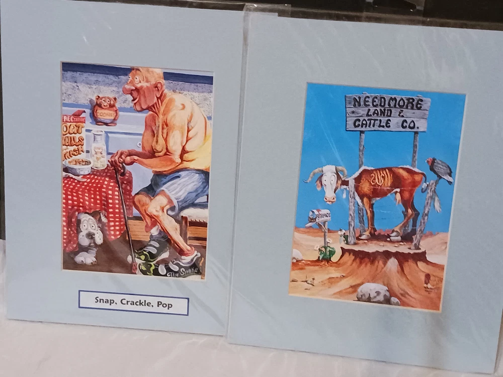 This Art Work Is From The Estate Of Hugh LaBere One Of The First Showroom Owners At The Denver Merchandise Mart . These 2 Boots Roy Reynolds Open Edition Prints #1 Snap Crackle Pop..# 2. Need More Land Cattle & Co . Boots Was Just One Of The Many Lines My Step Dad Represented He Knew Many Of The Artists Personally And These Are From His Personal Collection That He Wanted To Open An Art Gallery With . My Stepdad Hugh Earned The Title" The Living Legend" You Are Much Missed! COWBOY UP, Love Your Daughter Sheila. Thank You For Looking ! Or Buying ! H 8" X W 10" Still Sealed In Original Plastic***** His Bio Is On The Back Of Each Picture