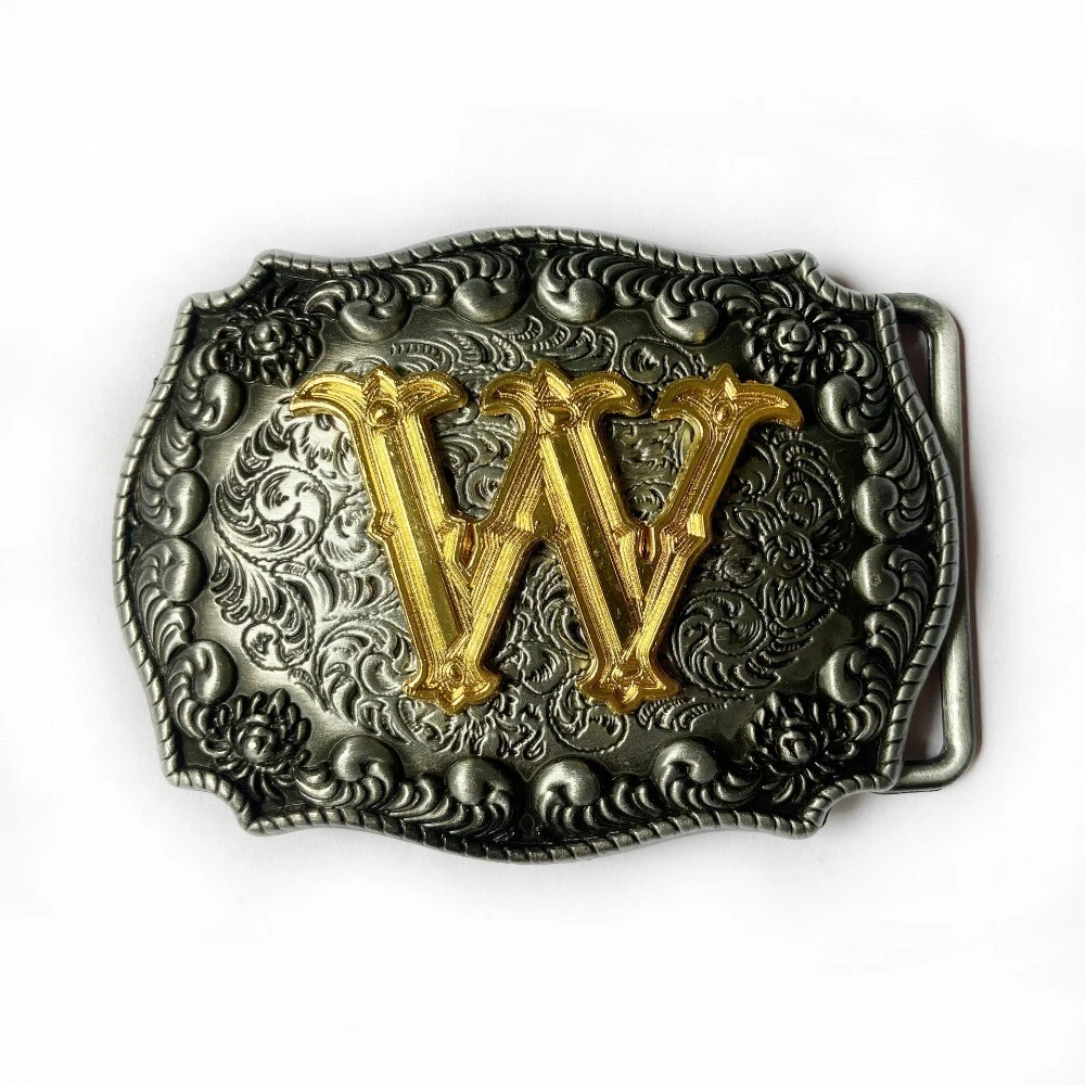 Western Belt Buckle for Men Cowboy Rodeo Vintage Style Wear Alphabet Letter W