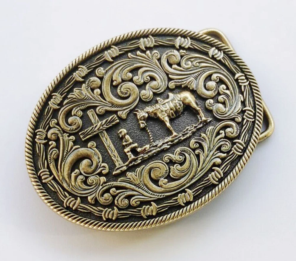 Western Belt Buckle for Men Women Cowboy Rodeo Vintage Style Wear Floral Prayer