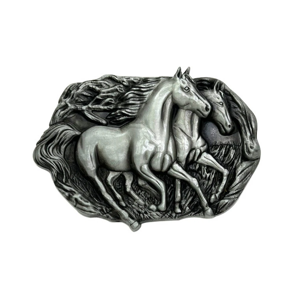 Western Belt Buckle for Men Women Cowboy Rodeo Vintage Style Wear Running Horses