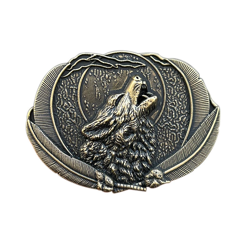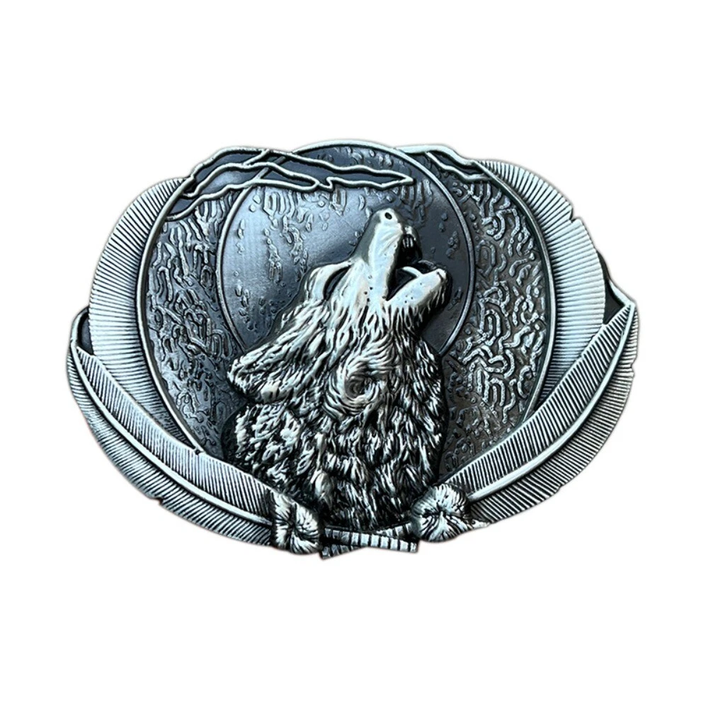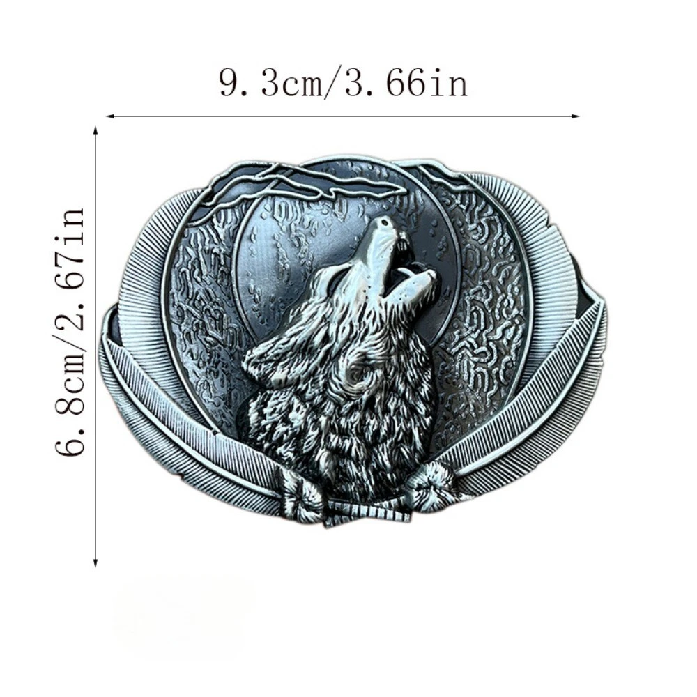 Western Belt Buckle for Men & Women Cowboy Rodeo Vintage Style Wear Wolf Howling