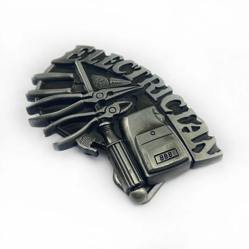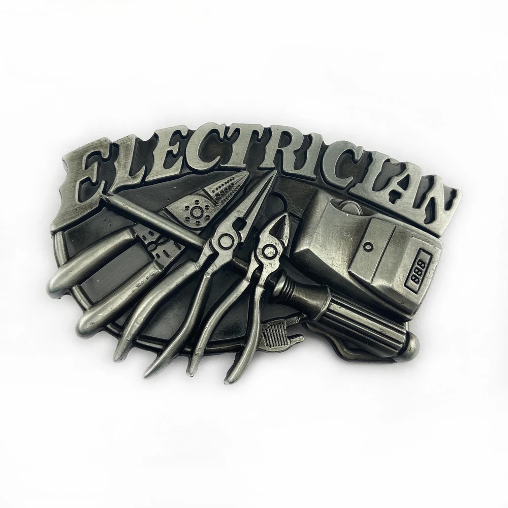 Add a touch of Western, Punk, and Occupational style to your outfit with this vintage electrician tools belt buckle. Made of Zinc Alloy, this belt buckle is compatible with a 1.5-inch belt, making it a great addition to any men's or women's casual wear collection. Whether you're an electrician or just a fan of vintage accessories, this belt buckle is sure to make a statement.