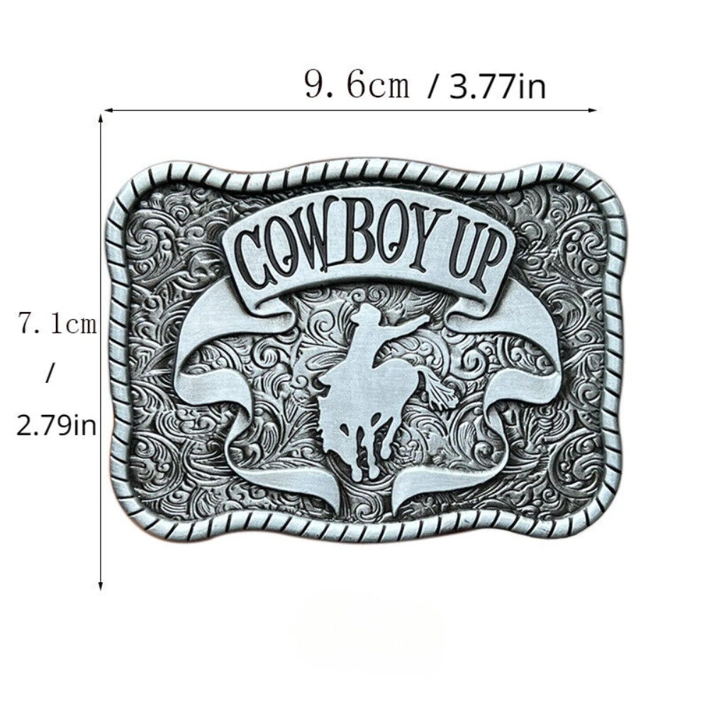 Complete your western look with this Cowboy Up belt buckle. The buckle is crafted from durable zinc alloy metal material, ensuring its longevity. The silver color gives it a sleek and stylish look that complements different outfits. This Western Buckle is perfect for cowboys and rodeo enthusiasts. It has a 1.5 inch width, making it compatible with most belts. The American and Western themes make it a unique accessory that stands out. Get your hands on this belt buckle today and add a touch of western charm to your wardrobe!