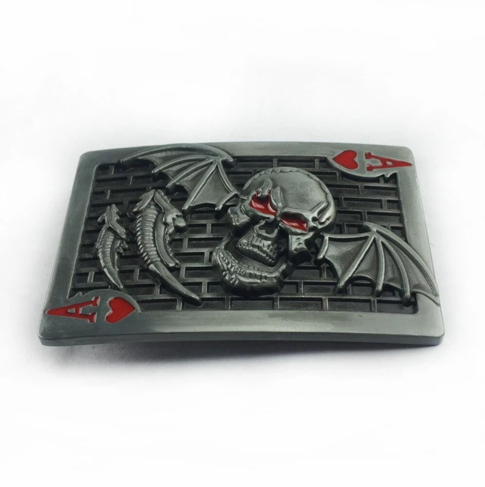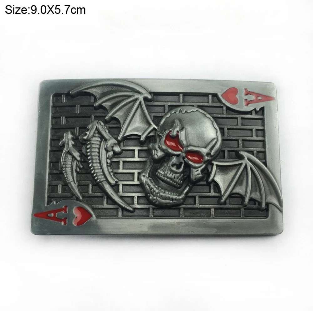 Western Cowboy Belt Buckle for Men & Women USA Retro Rodeo Playing Card A Skull