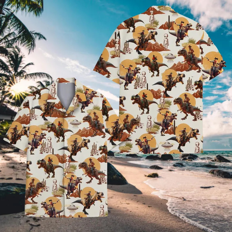 $ 8.56Cowboy Dinosaur Hawaii Shirt Funny Men Women Aloha Beach