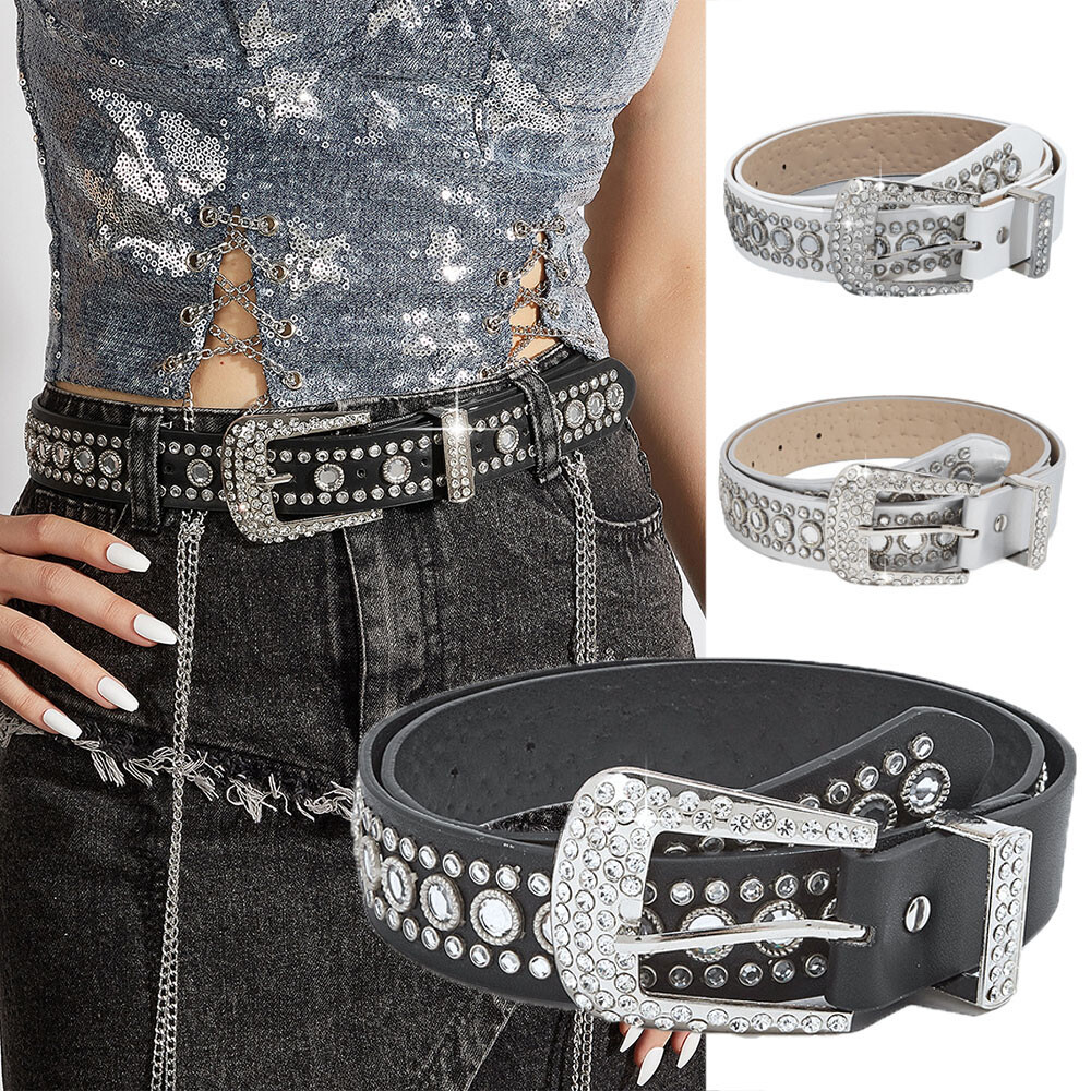 Western Rhinestone Belt Adjustable Crystal Bling Belt for Men and Women DIY Fashion Accessory