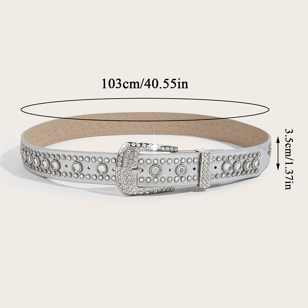 Features: 100% Brand New and high quality. --Made of high quality faux leather, the material and definite process makes any item reliable, comfortable and durable. --Perfect for formal or casual wear in any season and for all occasions and are also perfect for everyday wear. --It is an ideal gift for family, lovers and friends. Specification: Style: Fashion,formal,novelty,casual Material: PU Leather,Alloy,Rhinestone Color: silver,black,white Size: about 103*3.5cm (1 inch =25.4mm or 1mm = 0.0393 inch) Suitable Seasons: Summer, Winter, Spring, Autumn Package Includes: 1 x Rhinestone Belt Notice: 1.Please allow 2-3% error due to manual measurement. Please make sure you do not mind before you bid. 2.The colors may have different as the difference display,please understand.