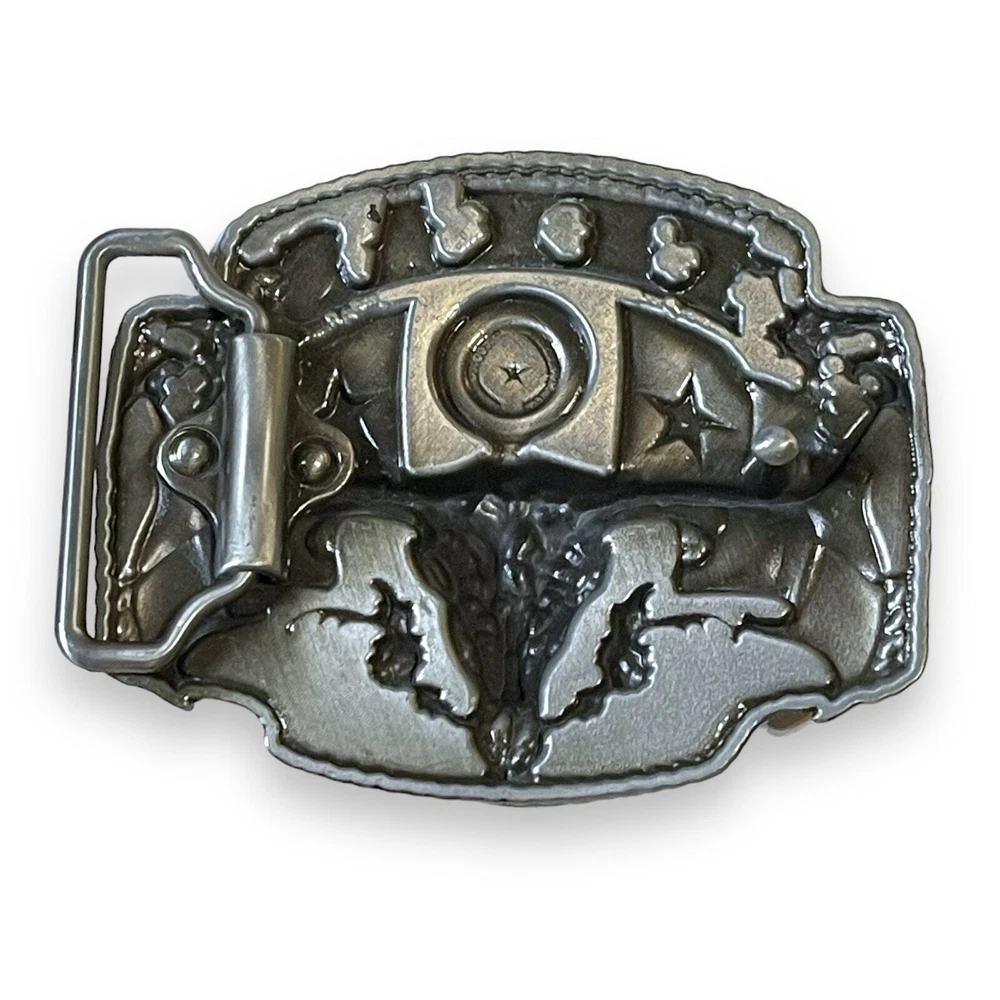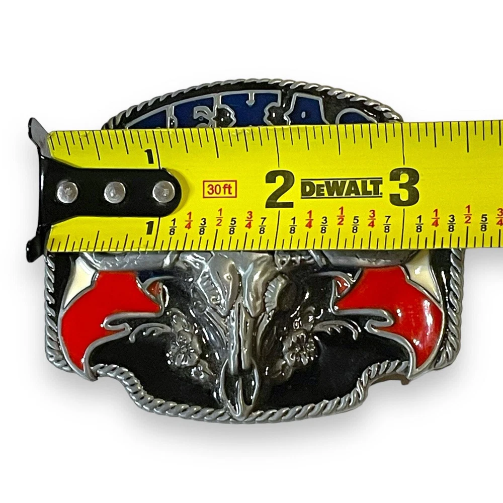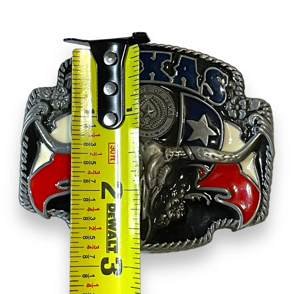 Western Belt Buckle Texas Enamel Longhorn Skull Cowboy Cowgirl Elevate your western look with this Texas enamel longhorn skull belt buckle. Made for cowboys and cowgirls, this buckle features a bold and intricate design that will make a statement. Perfect for any occasion, this buckle is a must-have for any western wardrobe. The buckle is in great used condition and ready to wear.