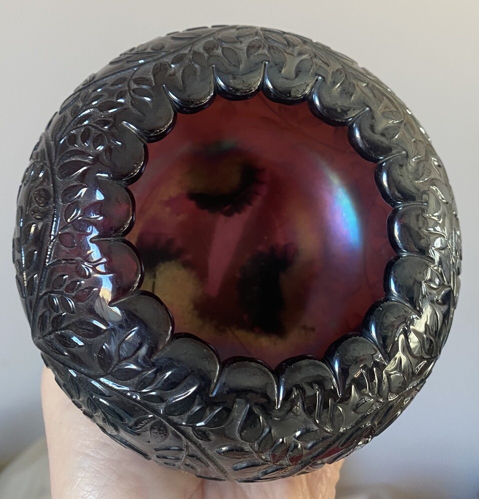 Fenton Art Glass Signed Frank Fenton Cranberry With Milk Crest Jacqueline Vase