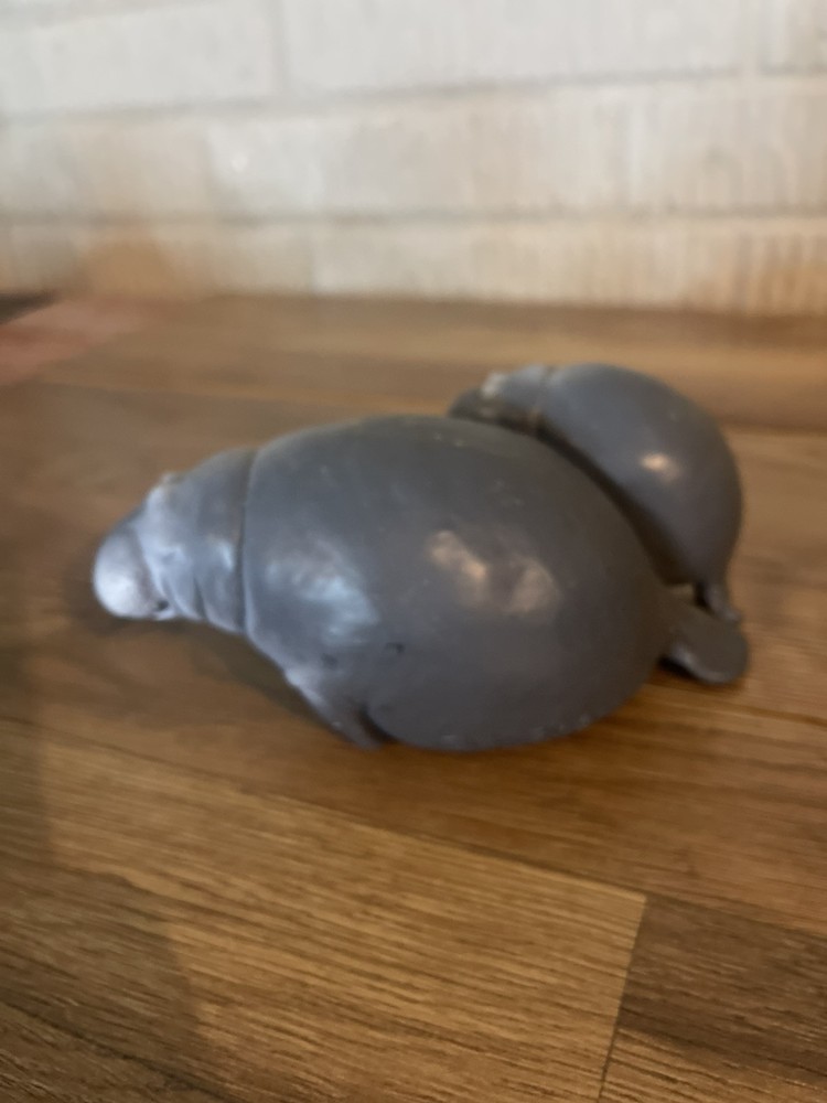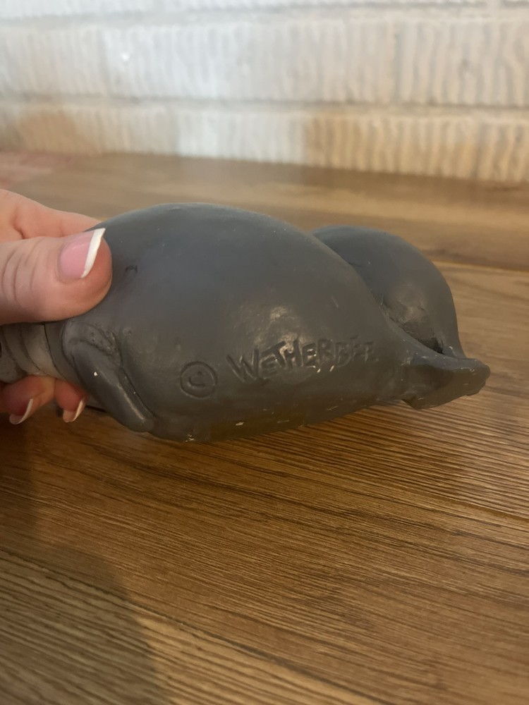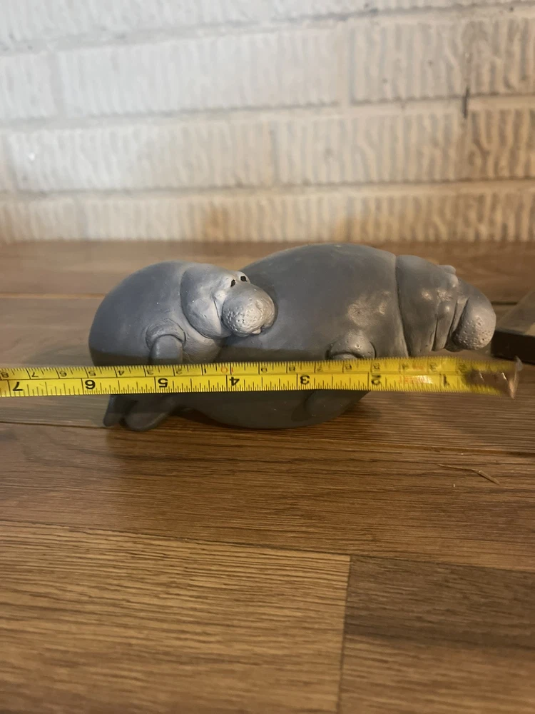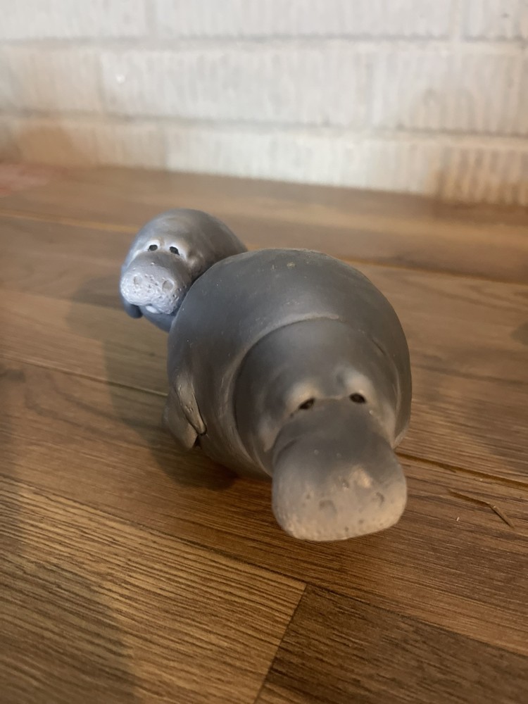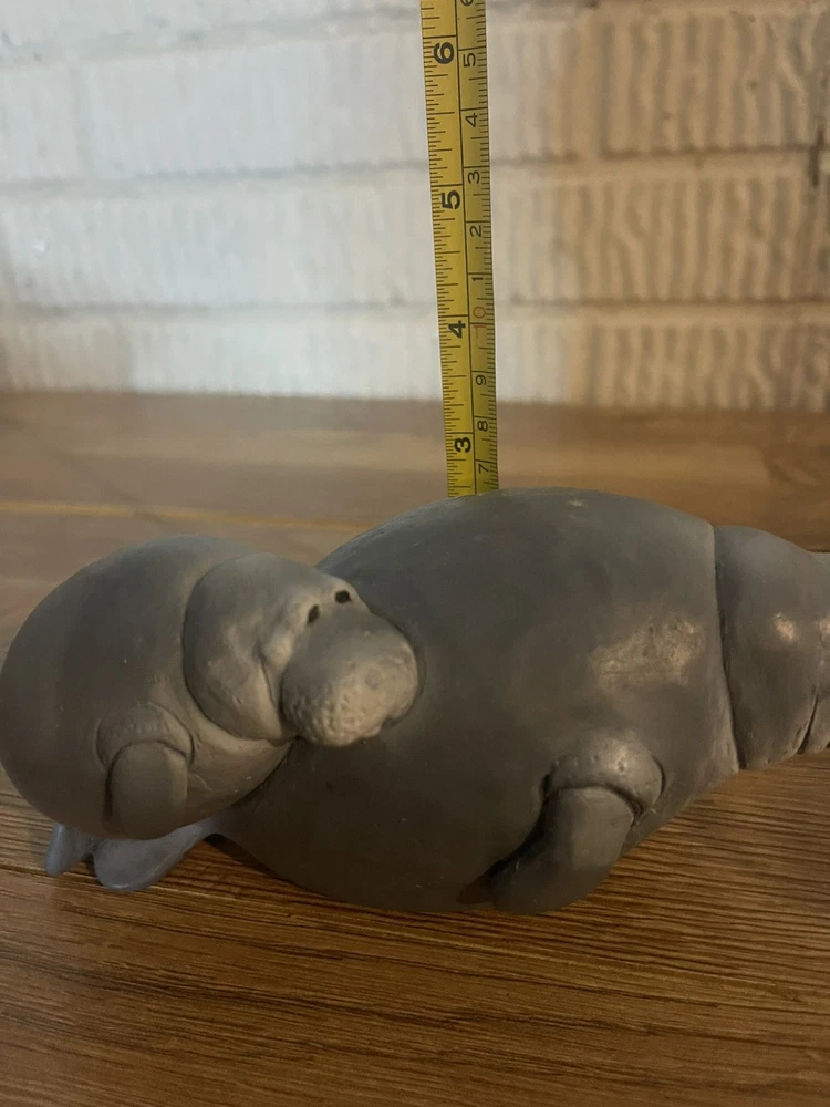 The Wetherbee Clay Manatee Sculpture depicts a mother manatee swimming alongside her baby. Crafted from clay, this collectible piece captures the gentle and nurturing bond between the two marine animals. The intricate details in the sculpture showcase the artist's skill in creating lifelike representations of these beloved creatures. Perfect for any marine life enthusiast or collector, this sculpture adds a touch of charm and natural beauty to any space.