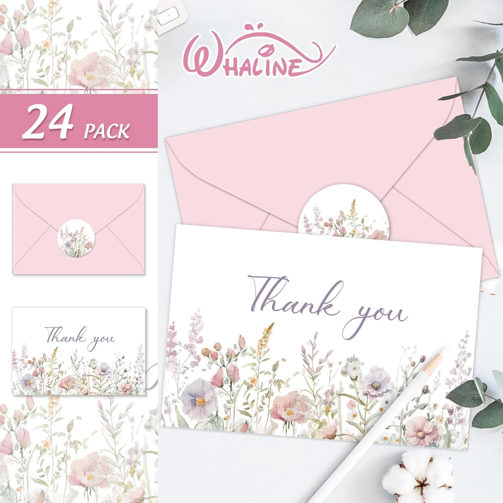 Features & Benefits: 24pcs thank you cards with envelopes and stickers, patterned with pink wildflowers, elegant and delicate, are sufficient to meet your different needs to give thanks. Made from good quality paper, safe and durable, thick and smooth. Ideal for wedding, birthday, baby shower, thanks giving day gift, you can use it in classroom, party and family gathering and so on. Specifications: Material: paper Size: 4 x 6 Inch Package includes: 24 x Thank You Card 24 x Envelope 24 x Sticker What You Will Get: 24pcs thank you cards with 24pcs printed envelopes and 24pcs stickers, sufficient to meet your different needs to give thanks. Delicate Design: Patterned with pink wildflowers and plants, printed with the words of thank you, delicate and elegant, suitable for many occasions. Material & Size: Made of good quality paper, durable and fluent enough to write. Each one is 4 x 6 inch, big enough to share your personal feelings on the blank part. The envelope is big enough to store the greeting cards. Envelopes & Stickers: The set comes with printed envelopes and matching stickers, when you finish your writing, put the card into the envelope and seal it, making it more private and official. All Occasions: Writing down your appreciation or gratitude on the blank place, and choose a sticker you like to stick on the cards or envelope. Perfect for wedding, bridal shower, baby shower, anniversary, greeting and Valentine's Day, to express your gratitude to your guests, friends and family.