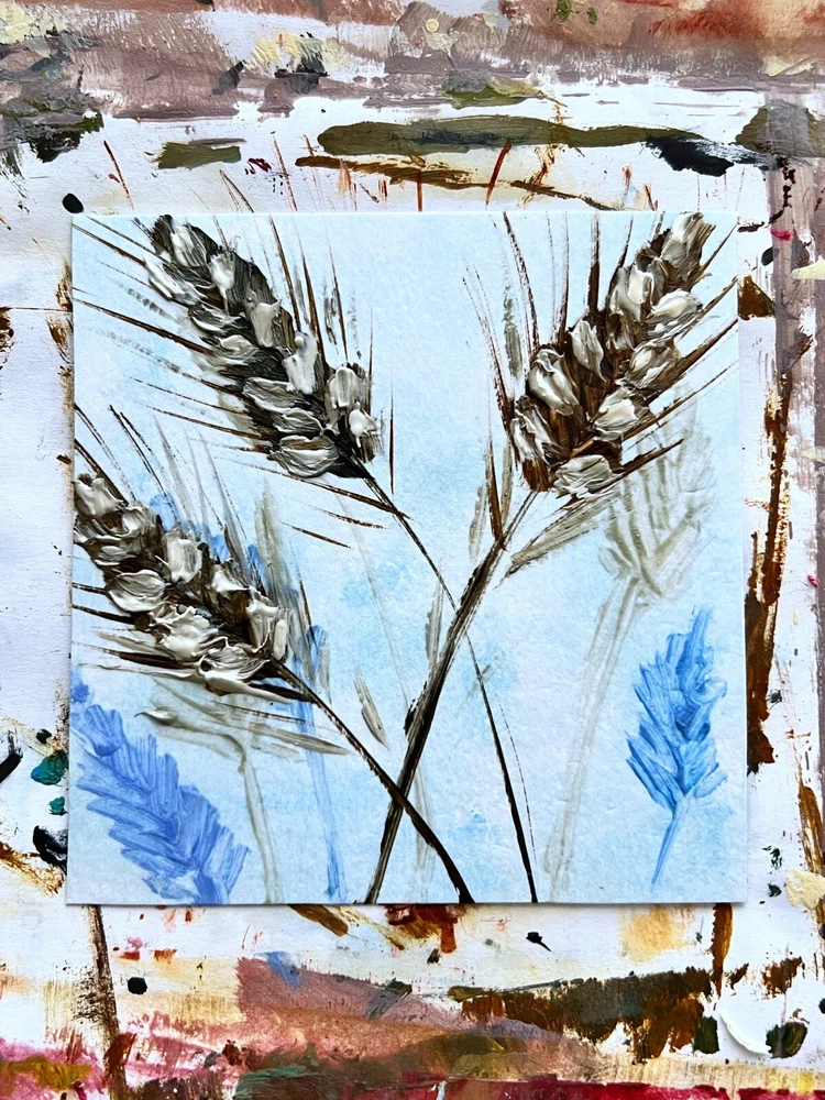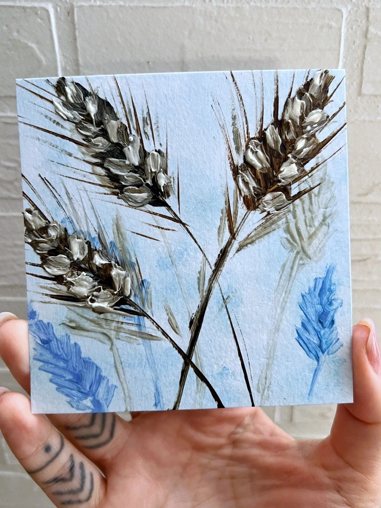 ๐ฟ Wheat stalks art. Wheat field oil painting. Hand painted field miniature artwork. Agriculture farming theme small oil painting. Wheat wall art. ๐ท Original author's oil painting on cardboard. ๐ฟ Size: 10x10 cm / 4x4 inches . Unframed. ๐ท Signed from the back by Kateryna Oliynyk. Made in Ukraine, 2024. ๐ฟ Materials: professional oil paints, cardboard ,. Unframed . Need a decorative frame. ๐ท I use exclusively professional and safe high quality paints for artists in my artworks. ๐ฟ Each parcel is securely and beautifully packed, so you don't have to worry about its safety. ๐ท Please note that paintings are sent without frames. ๐ฟ Please note that oil paints take a long time to dry, so for new paintings, the delivery period may increase by 1-2 weeks.